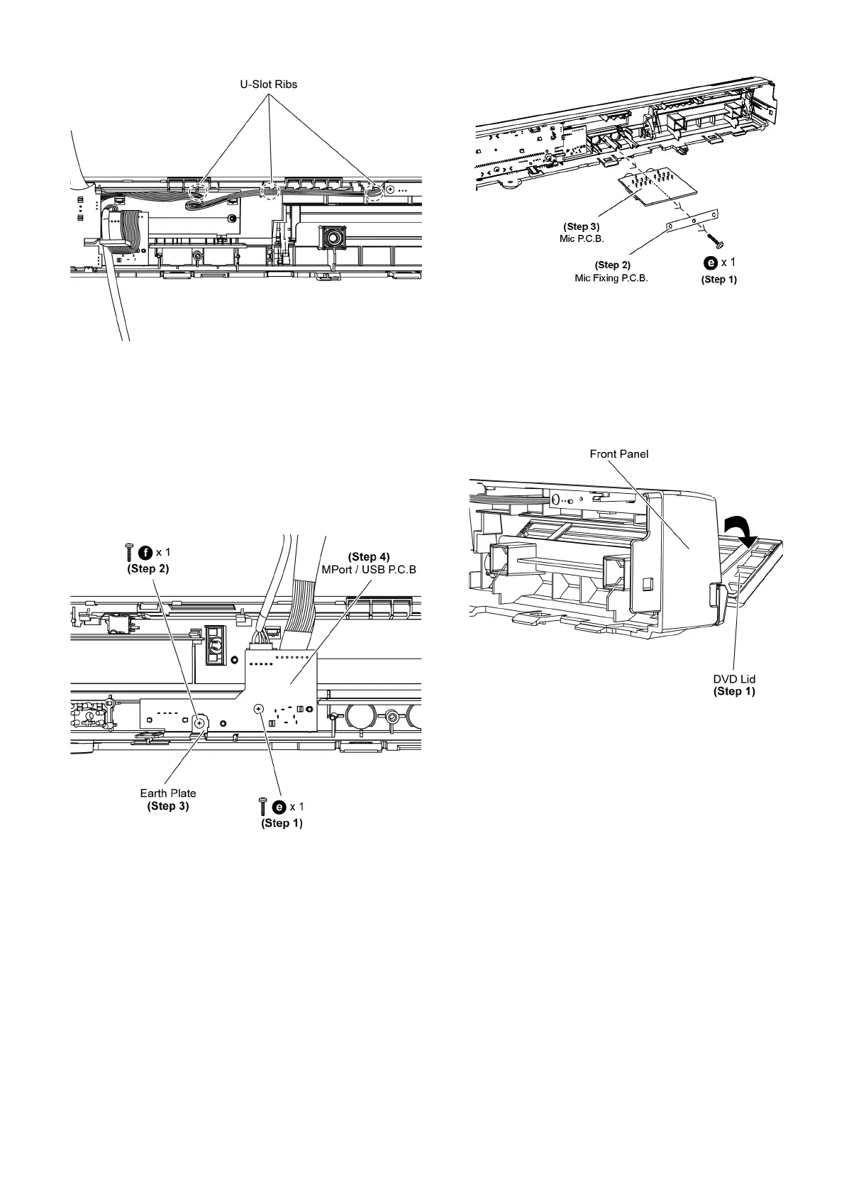 Step 1 Remove 1 screw (without washer) on MPort/USB P.C.B.