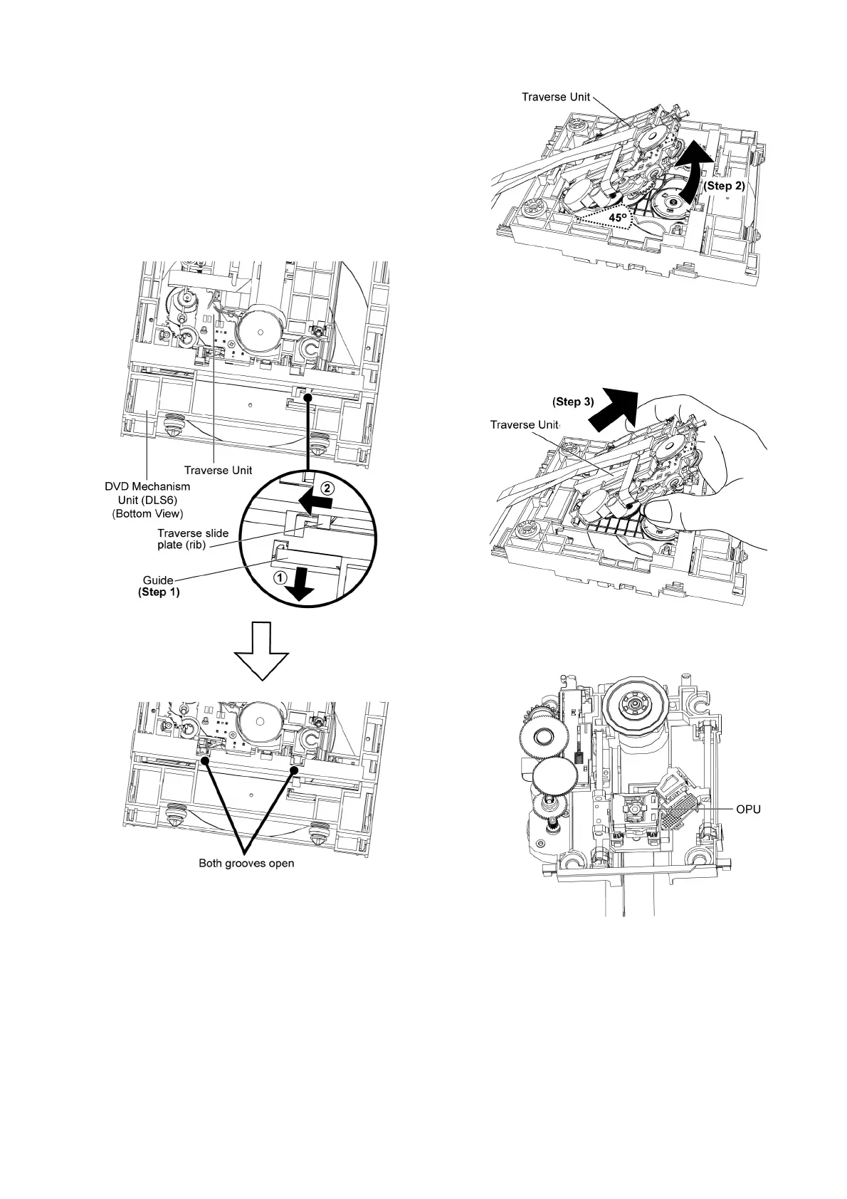 Step 2 Lift up the Traverse unit approximately 45° as shown.