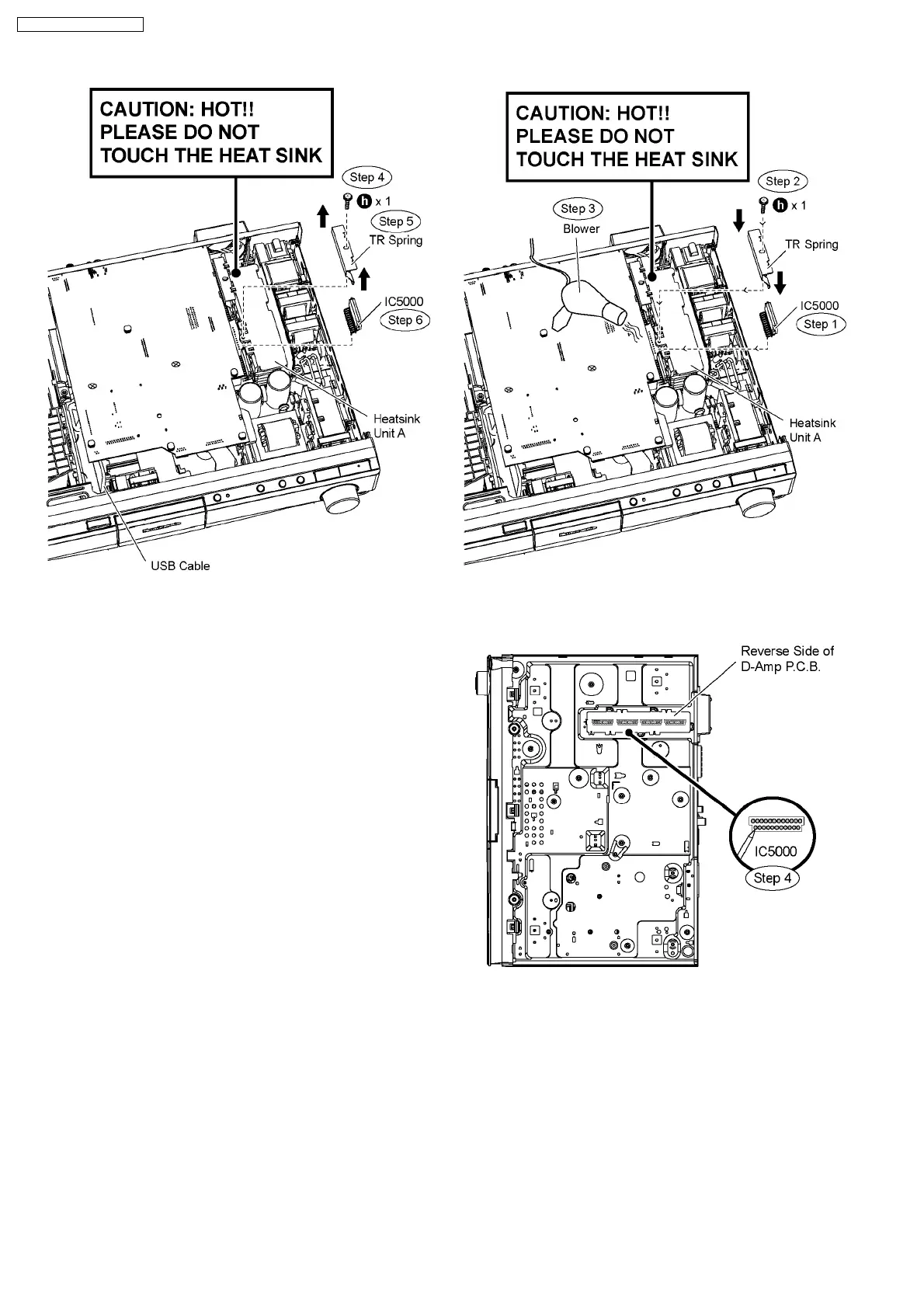 Step 1 Fix the digital amp IC (IC5000) to the heatsink unit A.
