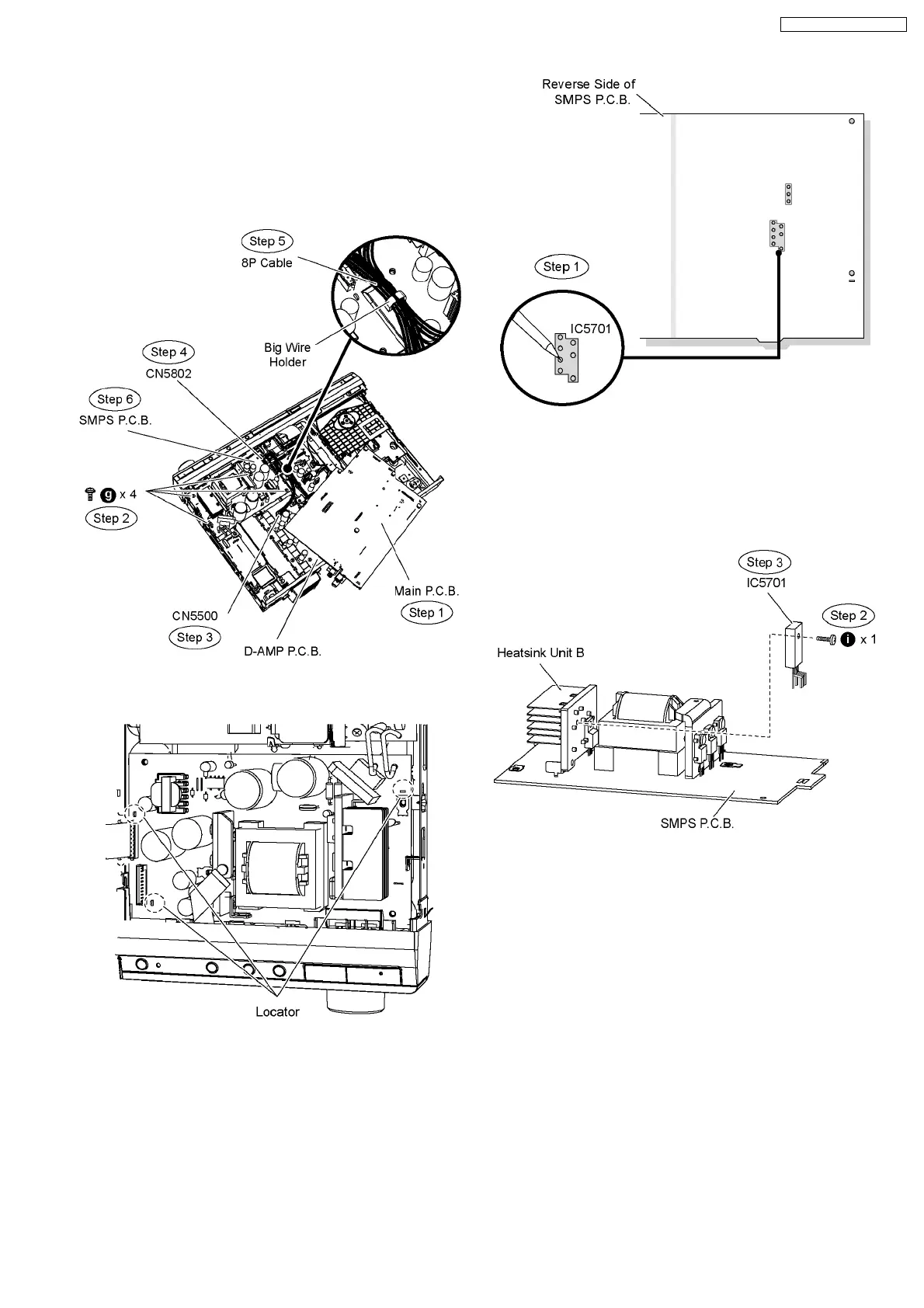 Special Note: Ensure the switch regulator IC (IC5701) is tightly