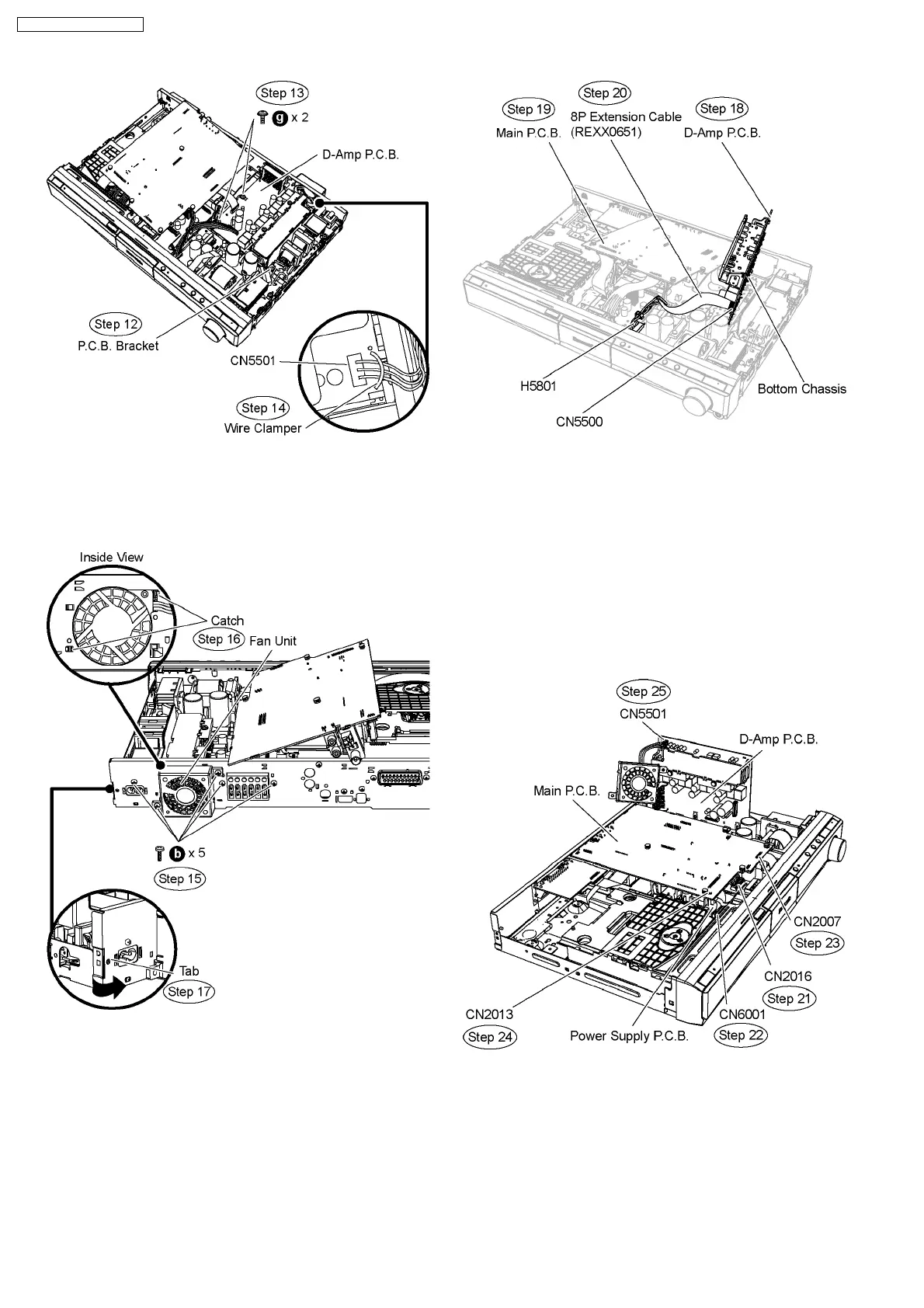 Step 18 Detach D-Amp P.C.B. from the bottom chassis and flip