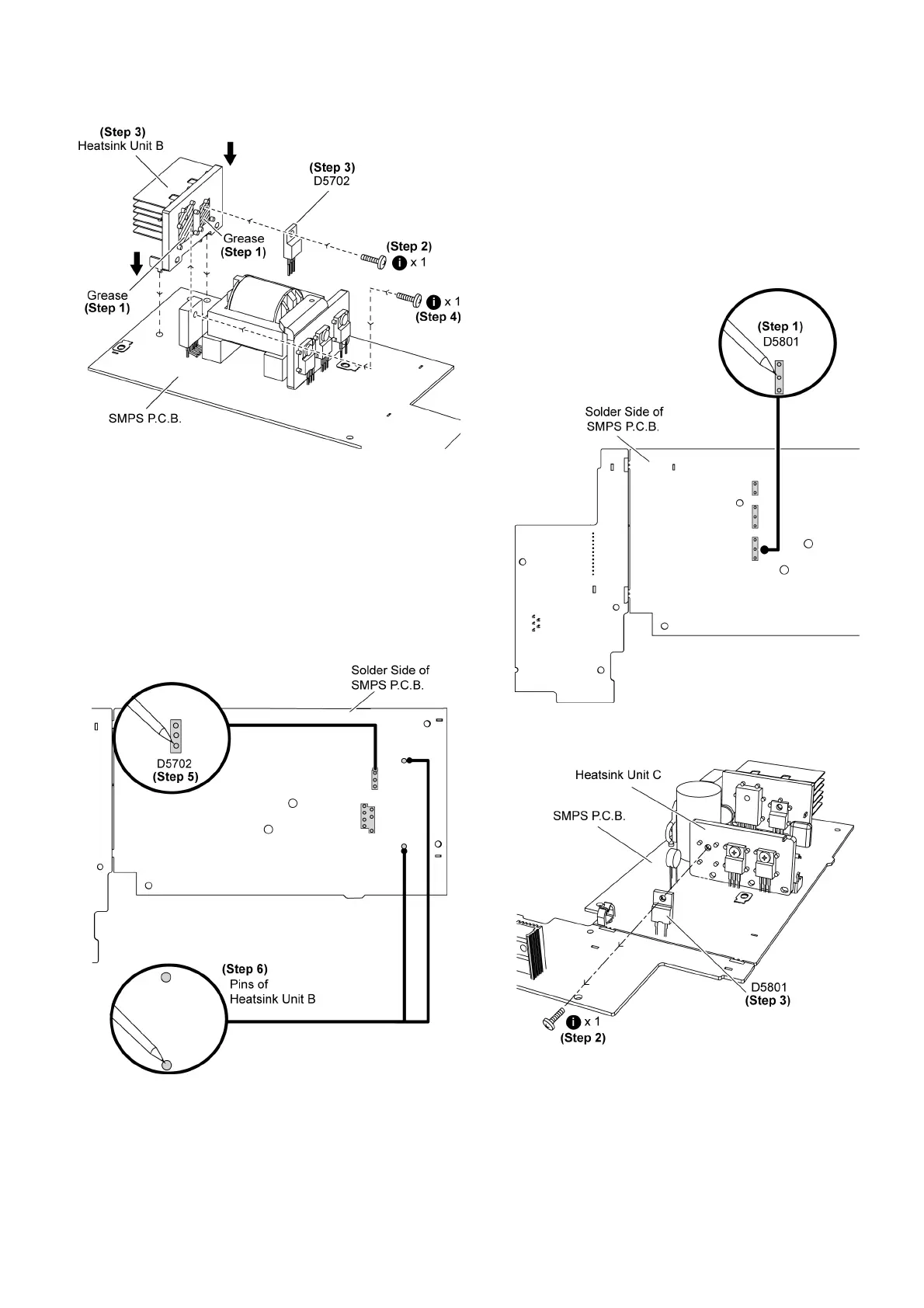 Step 3 Remove the regulator diode (D5801) from the SMPS