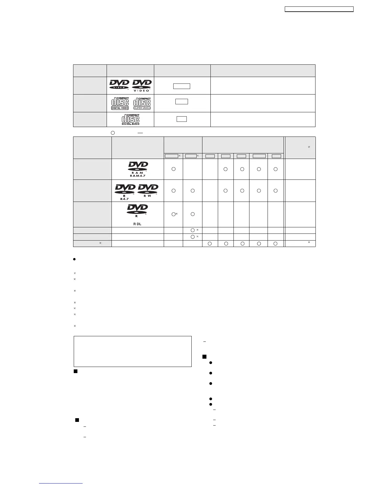 It may not be possible to play all the above-mentioned discs in some cases due to the type of disc, the condition of