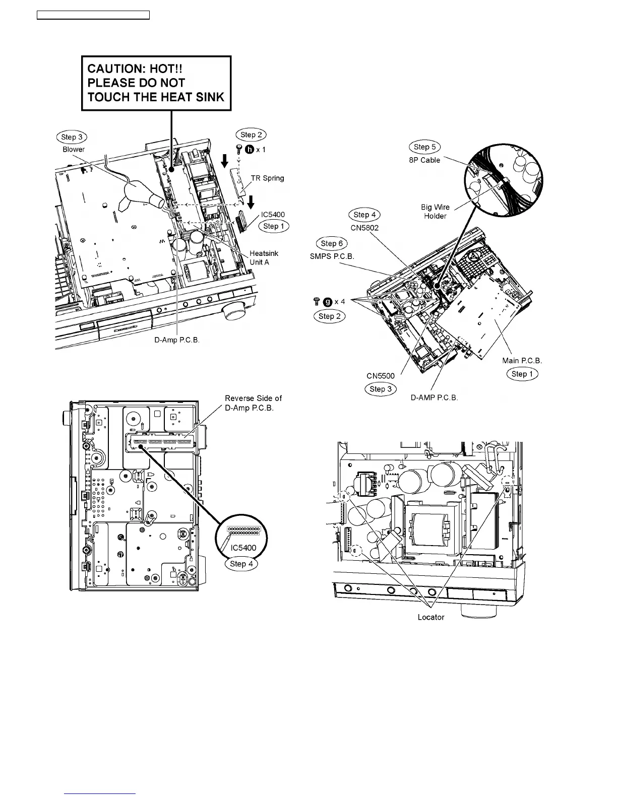 Step 5 Remove 8P cable (SMPS P.C.B. to D-Amp P.C.B.) from