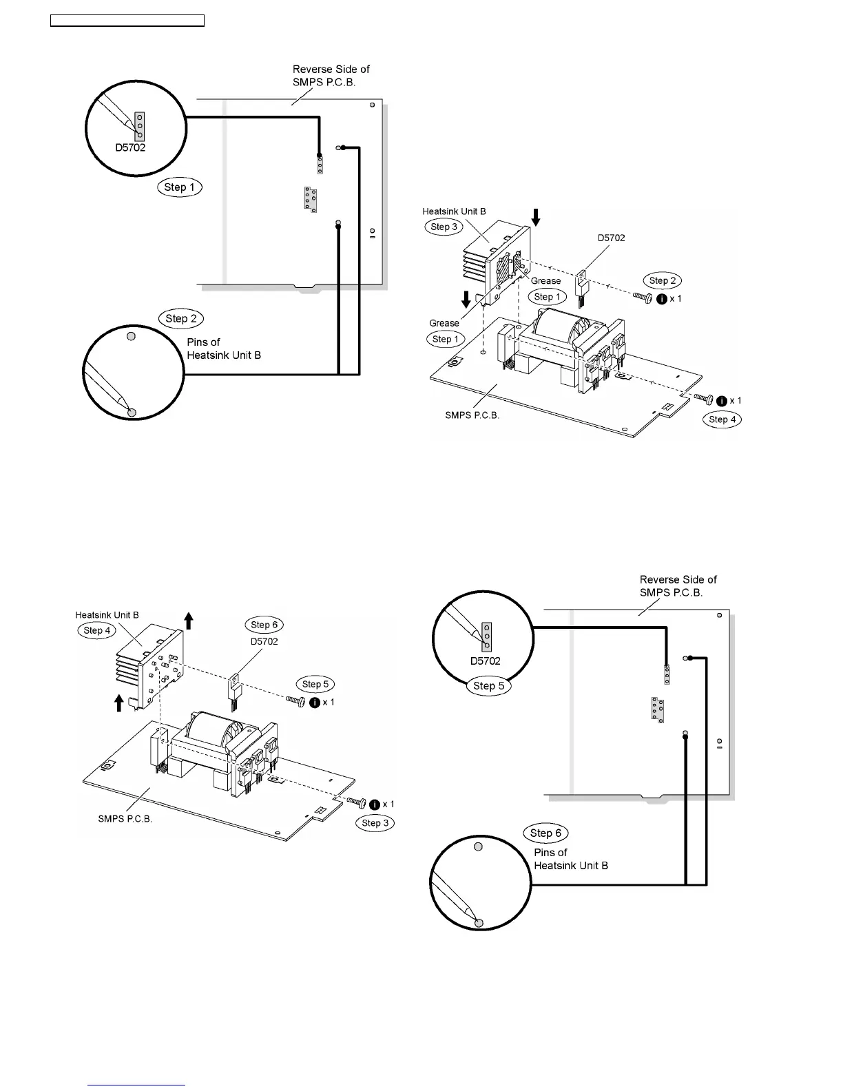 Step 3 Fix the heatsink unit B on SMPS P.C.B. in the direction