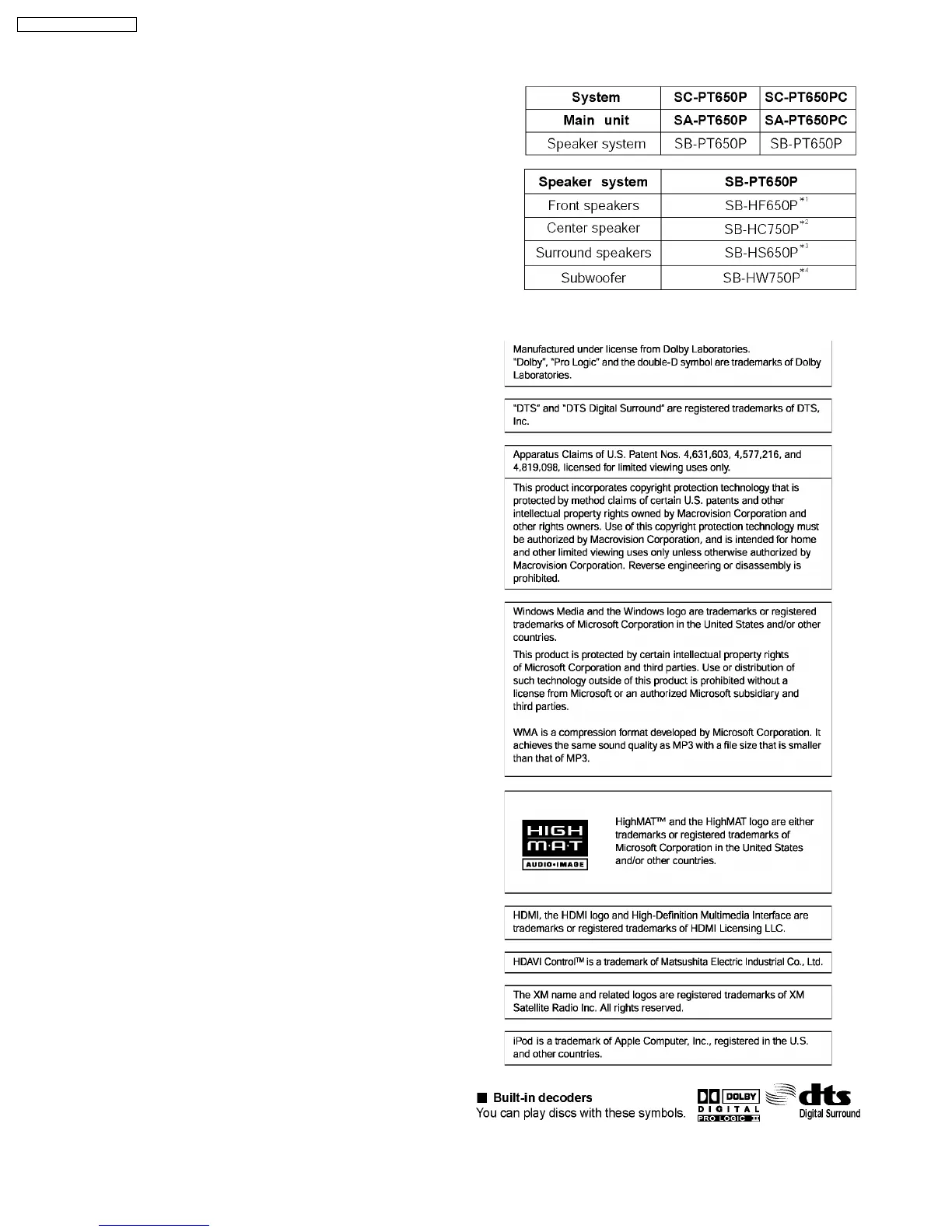 WMA (*3, 5), JPEG (*4, 5), HighMAT Level 2 (Audio and