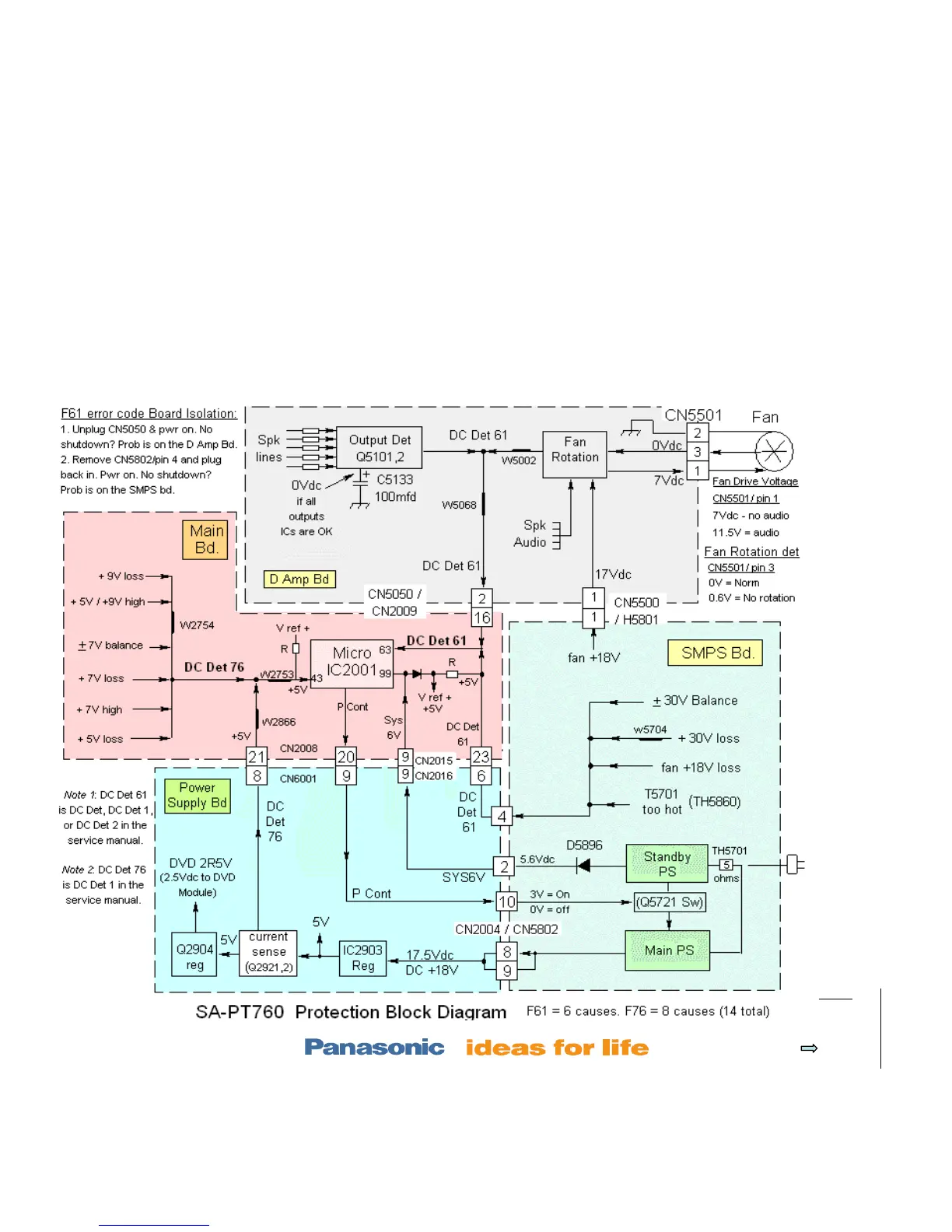 Panasonic SA-PT660 - PT760 Protection Troubleshooting Concept; F61 Error Code Board Isolation Strategy; PT760 Protection Block Diagram