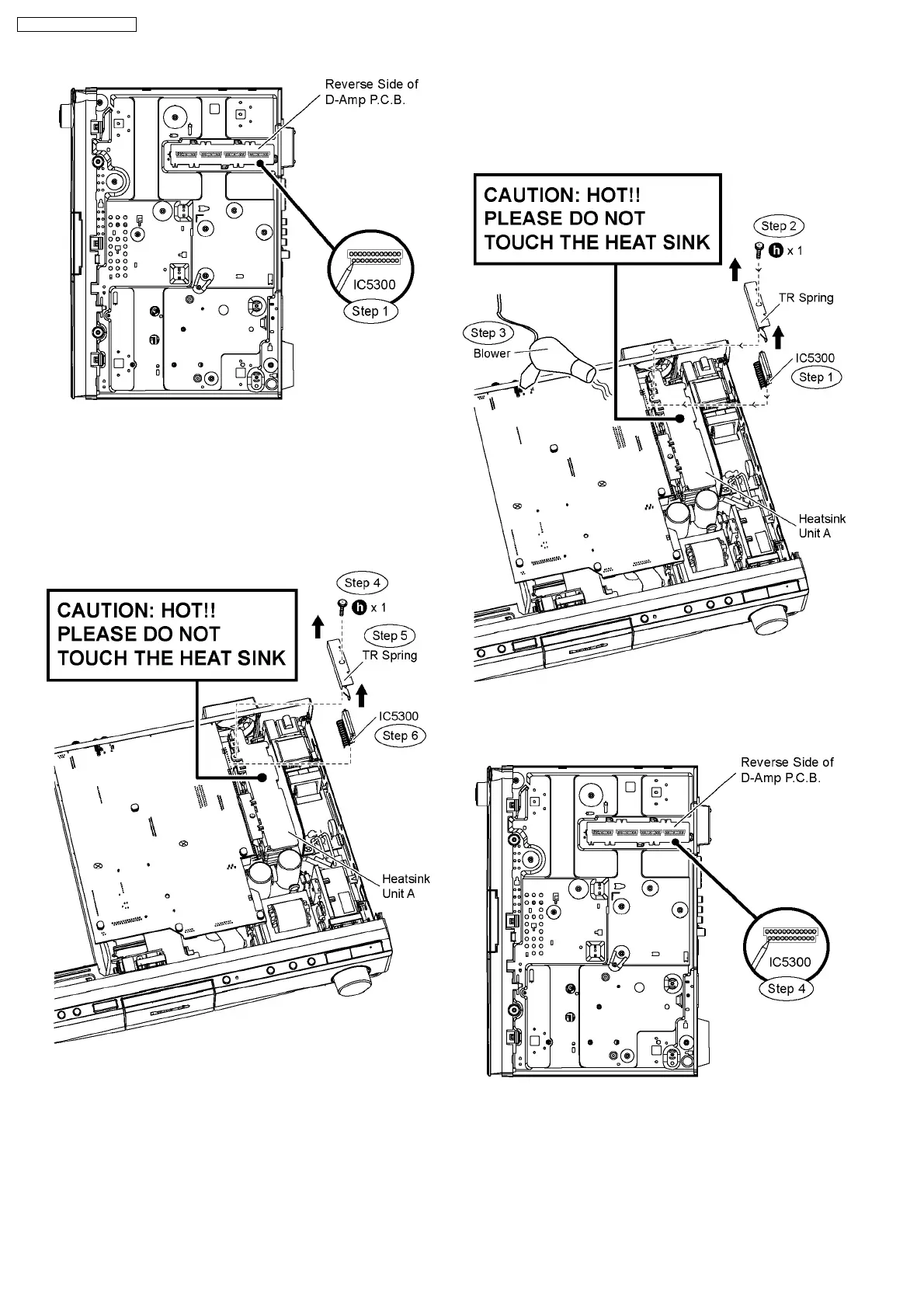 Step 1 Fix the digital amp IC (IC5300) to the heatsink unit A.