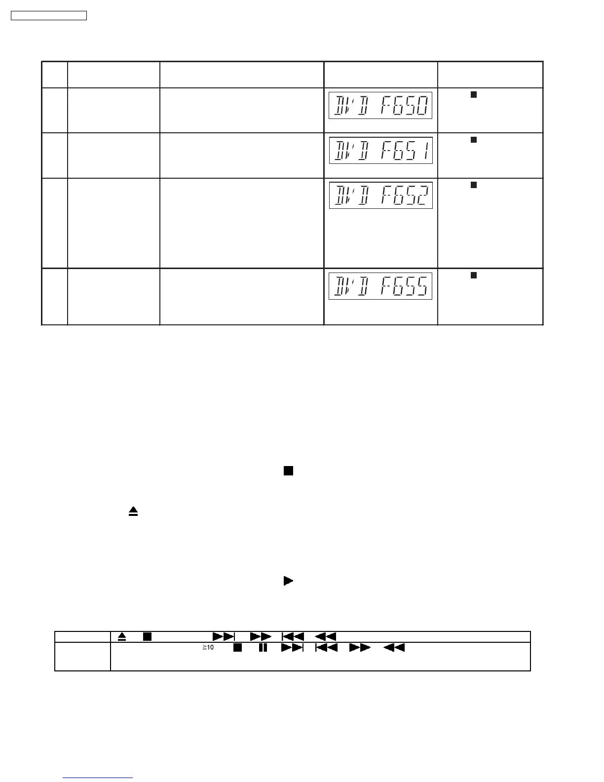 Diagnosis Contents Description of error Automatic FL Display Remarks