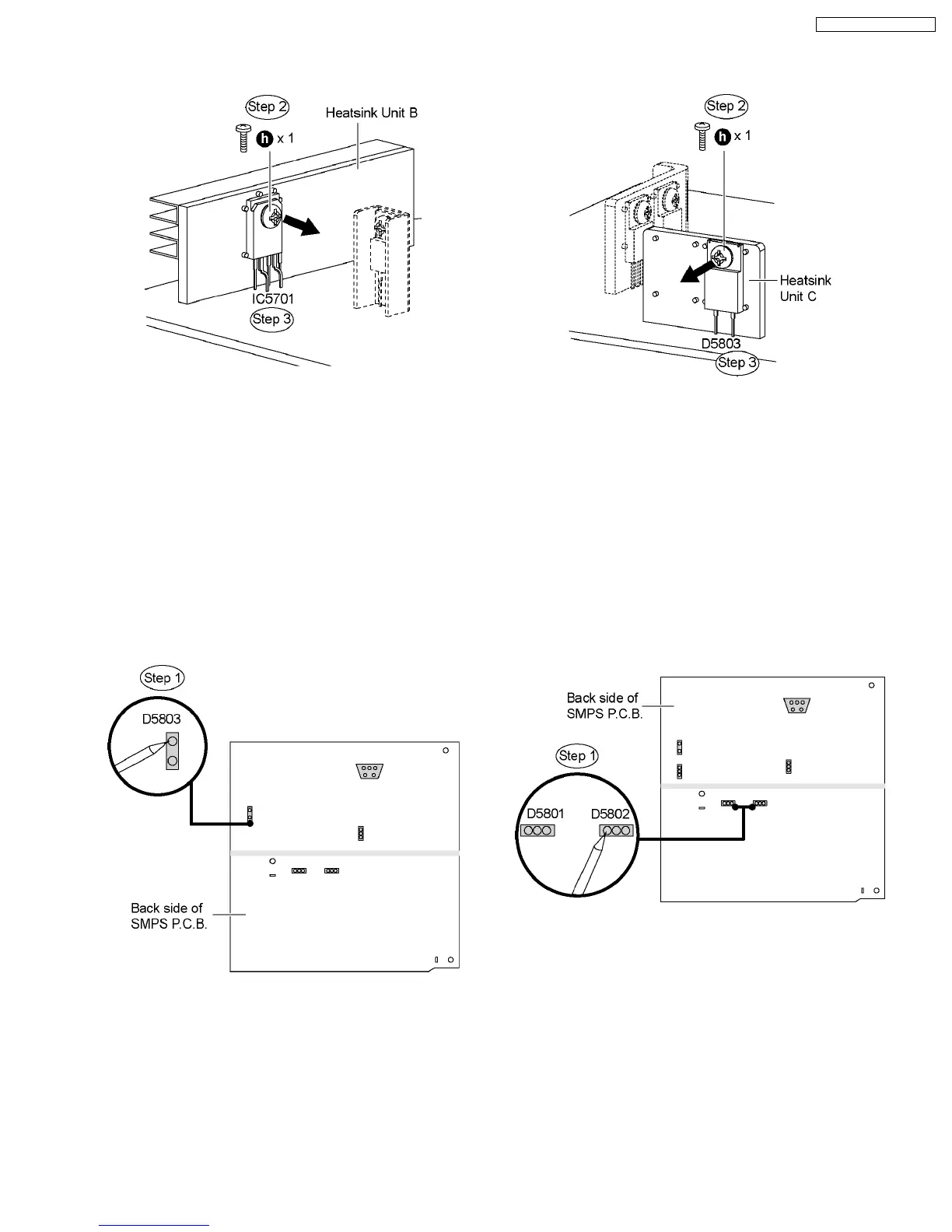 Step 3 Remove the diode (D5803) from the heatsink unit C.