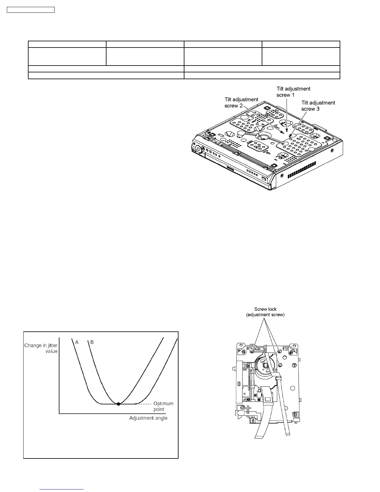 6. Adjust tilt adjustment screw 1 so that the jitter value is