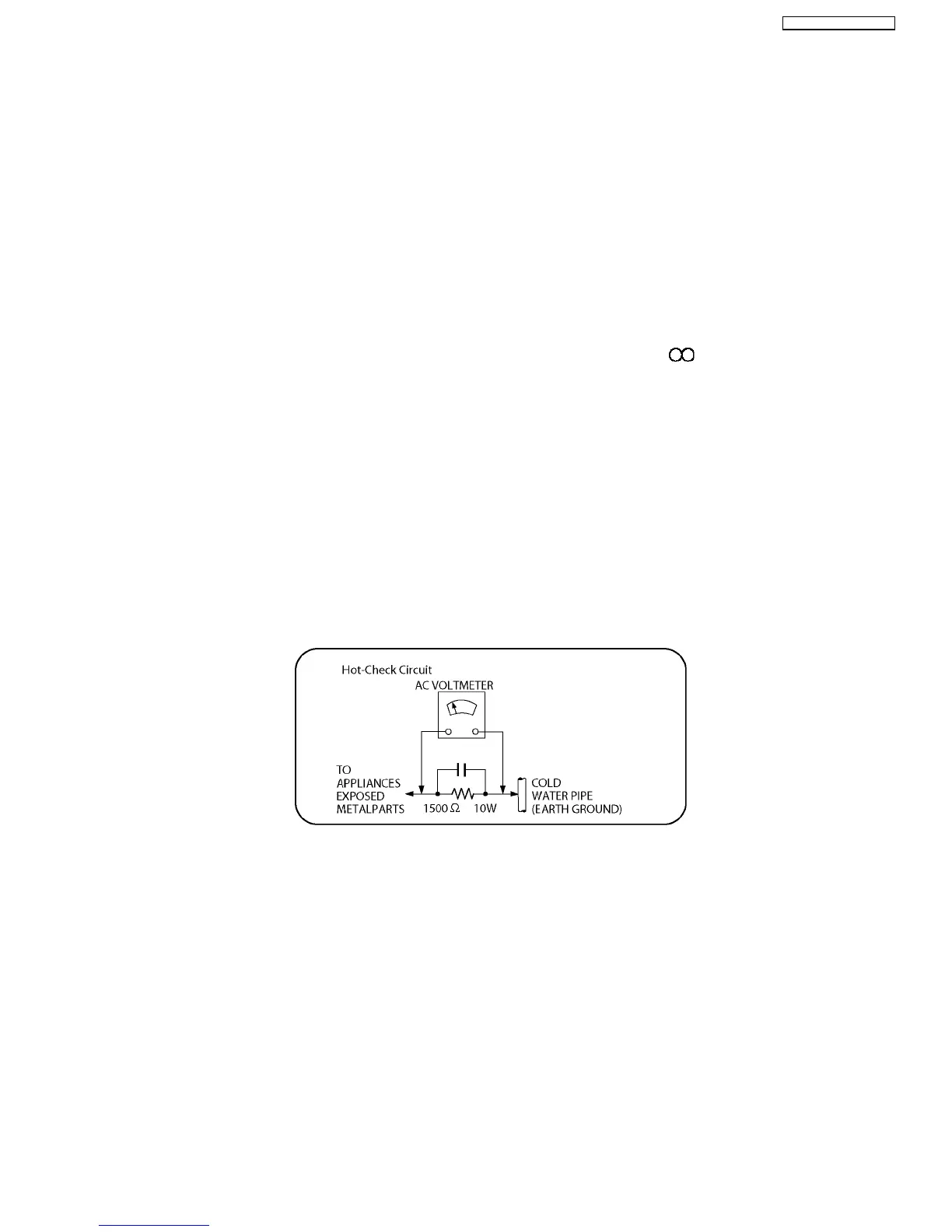 3. After servicing, carry out the following leakage current checks to prevent the customer from being exposed to shock hazards.