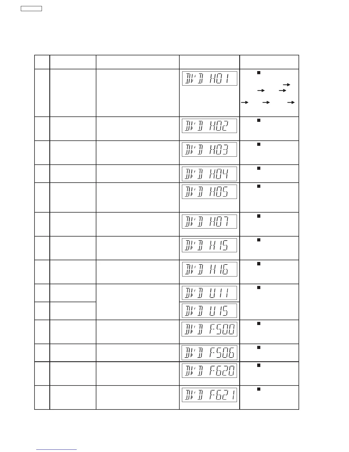 Diagnosis Contents Description of error Automatic FL Display Remarks