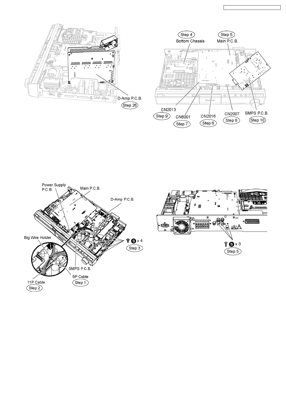 Step 1 Remove the 8P cable (SMPS P.C.B. to D-Amp P.C.B.)
