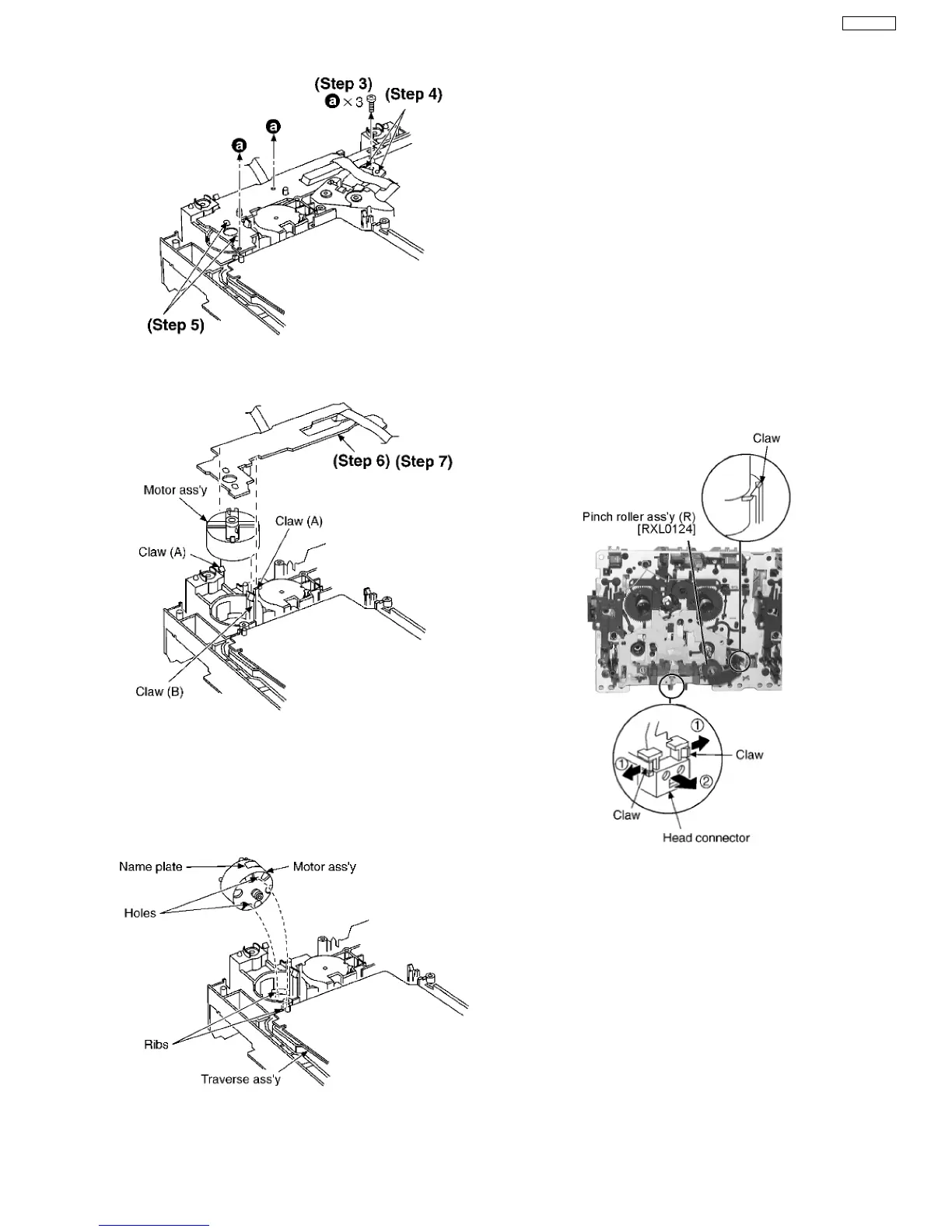 Step 7 Release the claw (B), and then remove the motor ass’y.