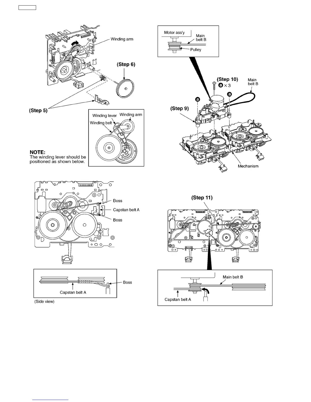 Step 12 Put the capstan belt A on the motor ass’y pulley.