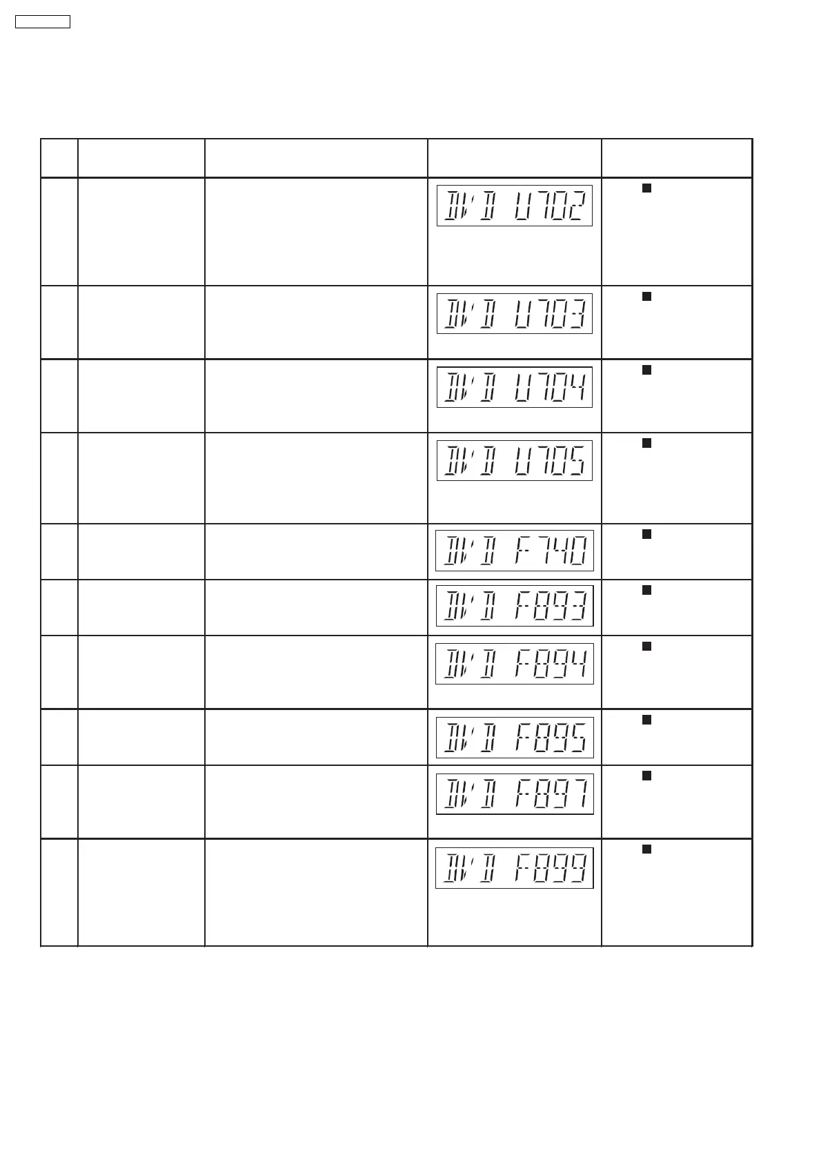 Diagnosis Contents Description of error Automatic FL Display Remarks