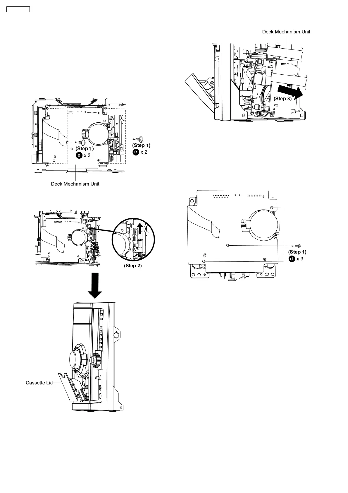 Step 1 Remove 4 screws at Deck Mechanism.