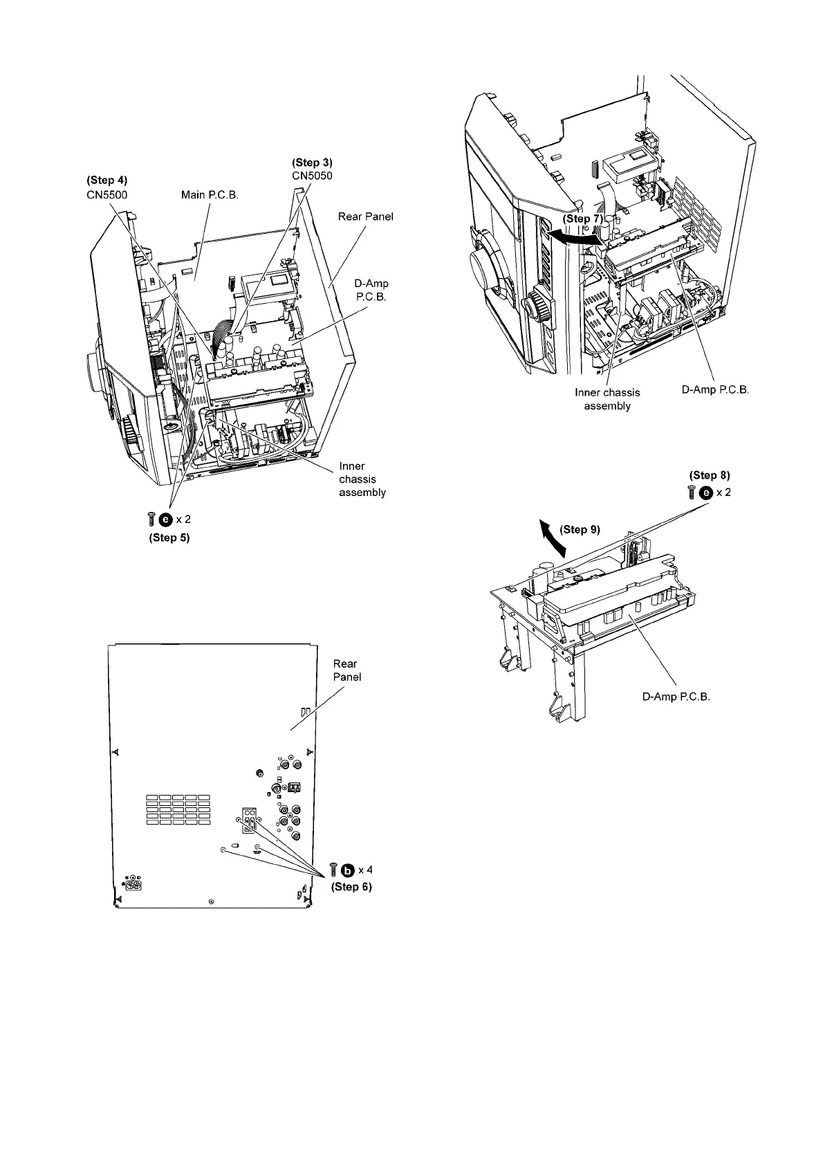 Step 7 Lift up the D-Amp P.C.B. together with the Inner chassis