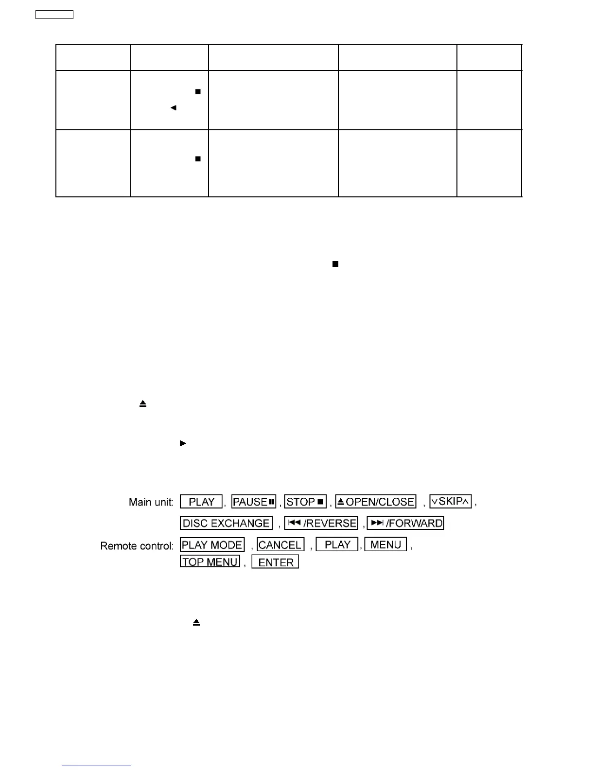 1. With the SELECTOR on DVD/CD and POWER ON, hold down the [CD PLAY] KEY on the main unit, and then press the
