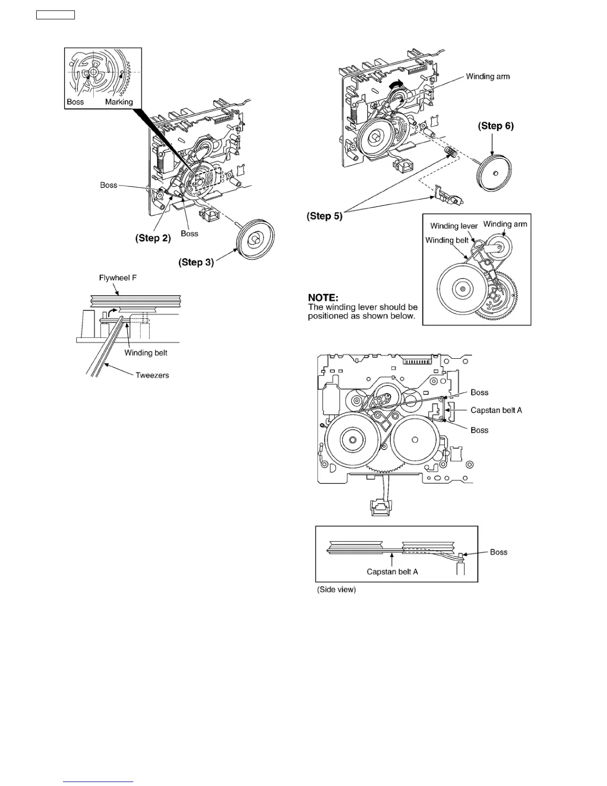 Step 8 Put the capstan belt B on the motor ass’y pulley.
