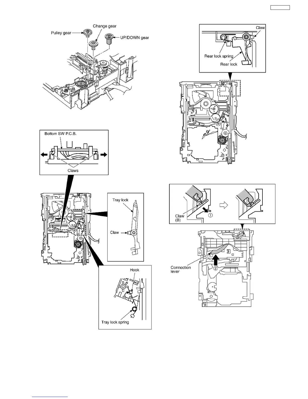 Step 9 Pressing the claw (B) in the direction of arrow (1), force