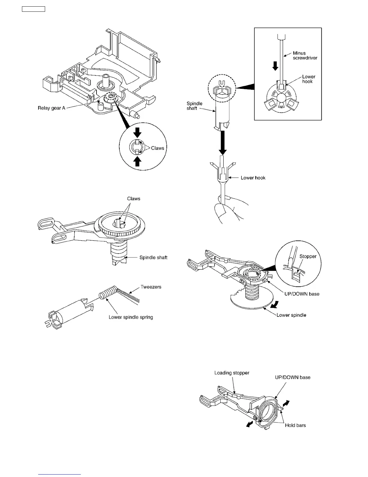 Step 9 Release the 2 claws, and then remove the spindle shaft.