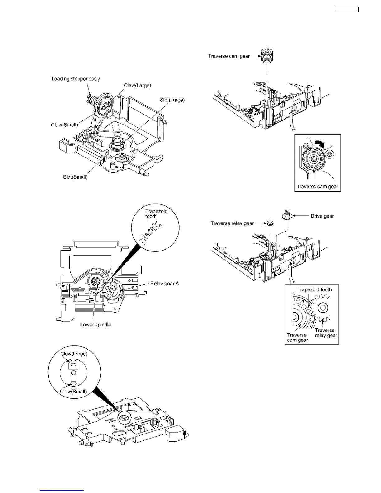 Step 2 Rotate the traverse cam gear to the direction of arrow.