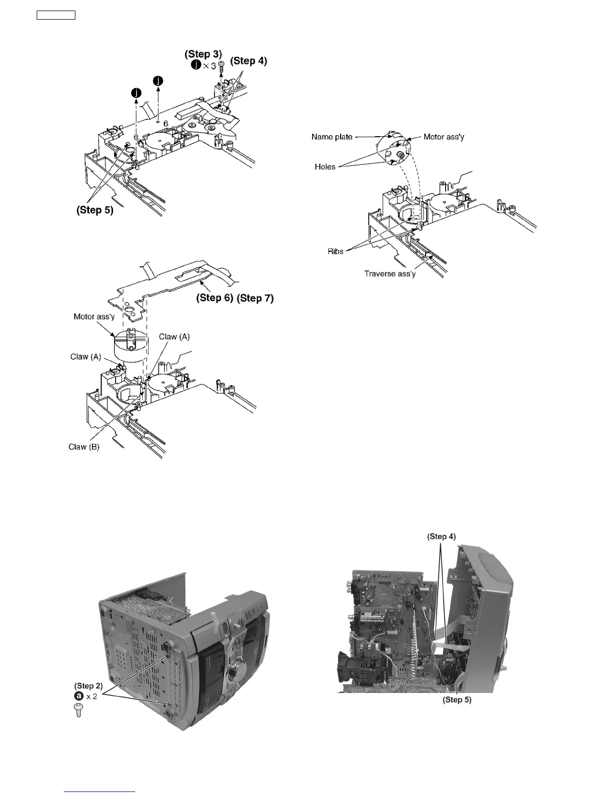 Step 7 Release the claw (B), and then remove the motor ass’y.