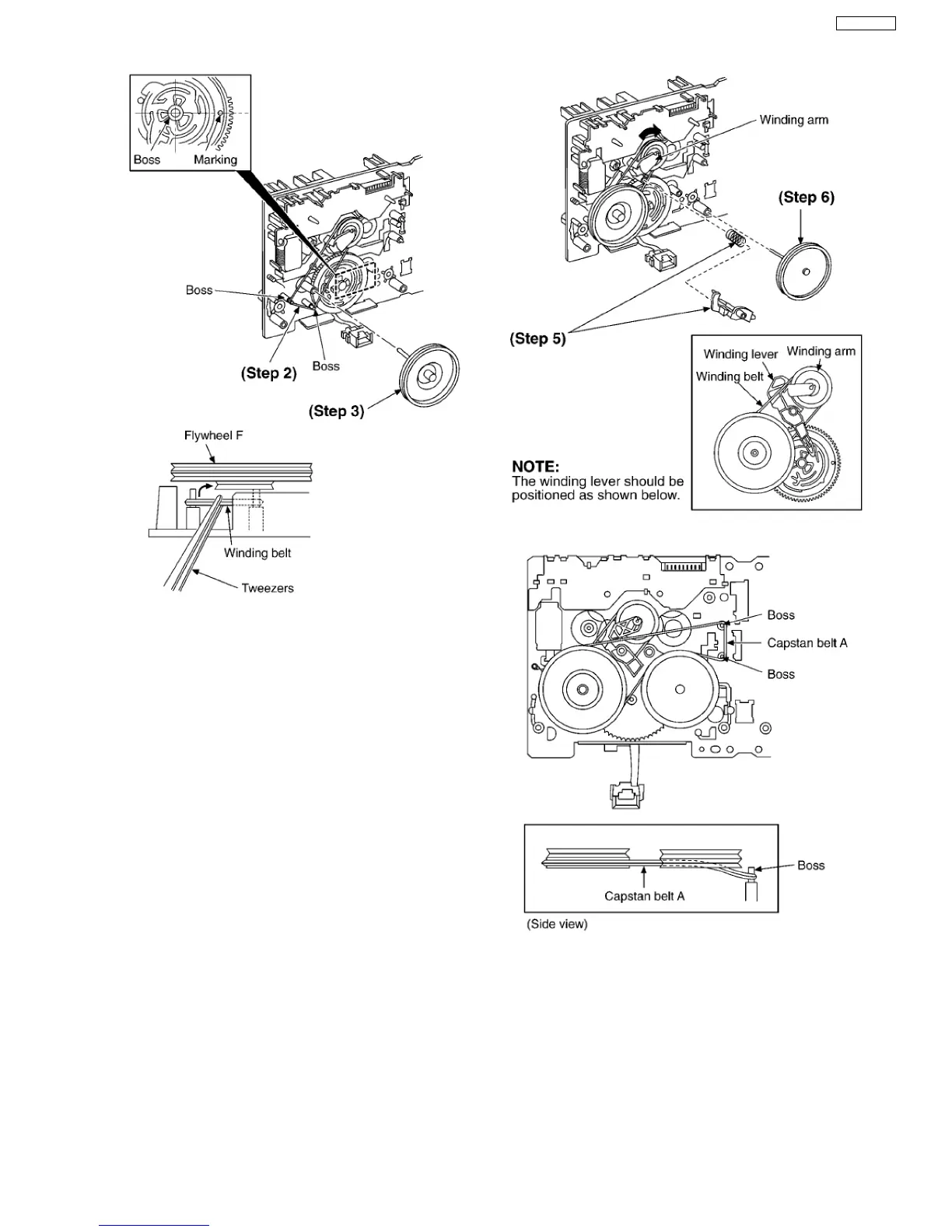 Step 8 Put the capstan belt B on the motor ass’y pulley.