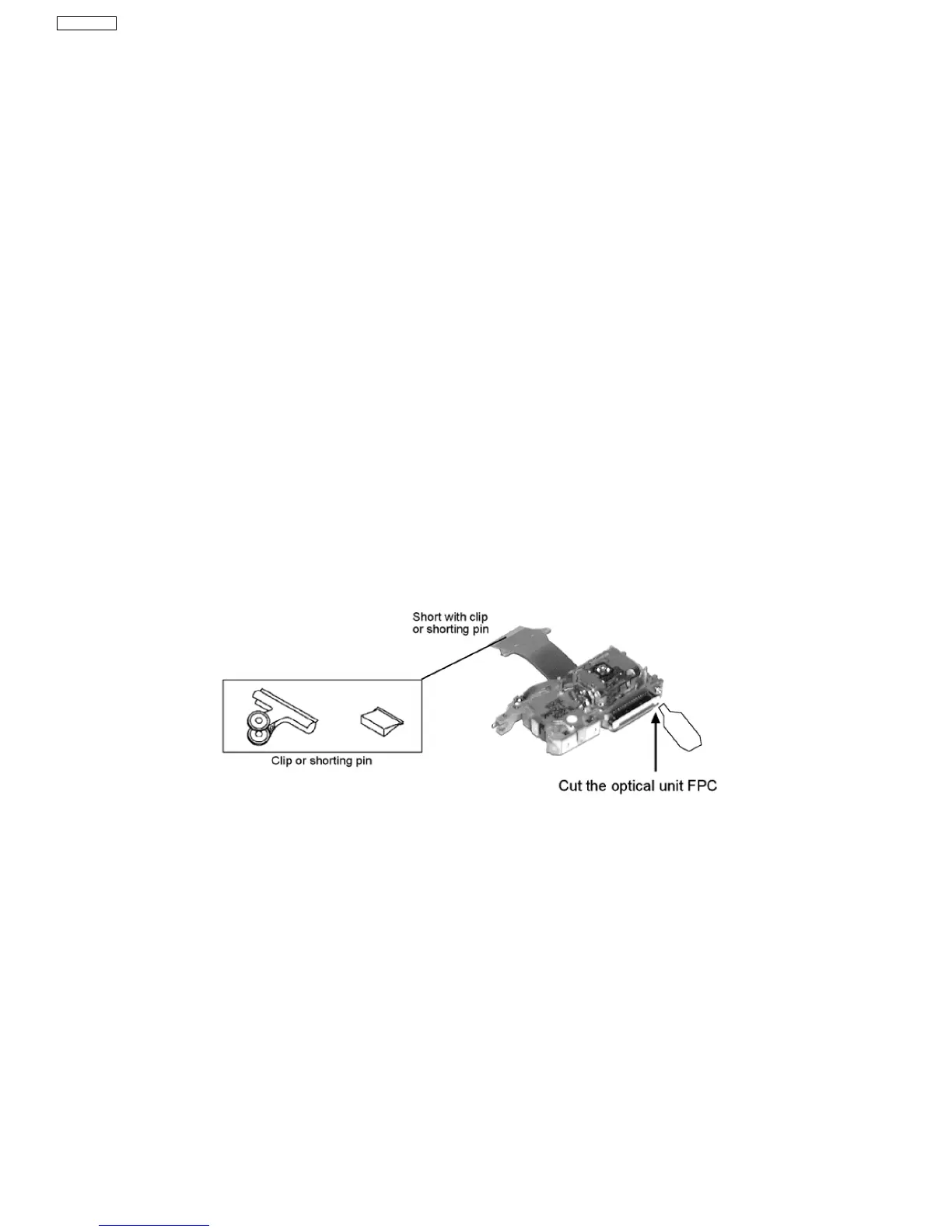2. Short-circuit the flexible cable of optical pickup remove from the circuit board using a short-circuit pin or clip in order to prevent
