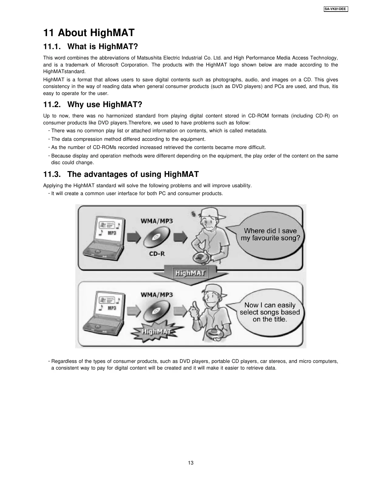 HighMAT is a format that allows users to save digital contents such as photographs, audio, and images on a CD. This gives