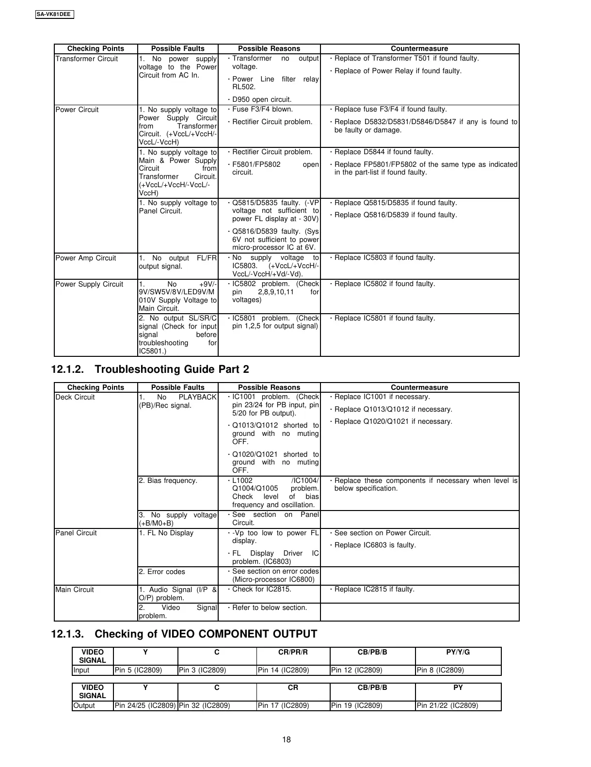 12.1.3. Checking of VIDEO COMPONENT OUTPUT