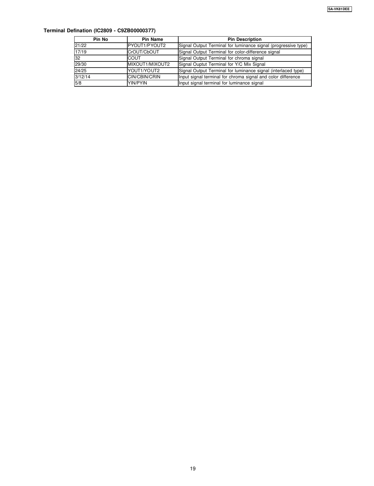 17/19 CrOUT/CbOUT Signal Output Terminal for color-difference signal
