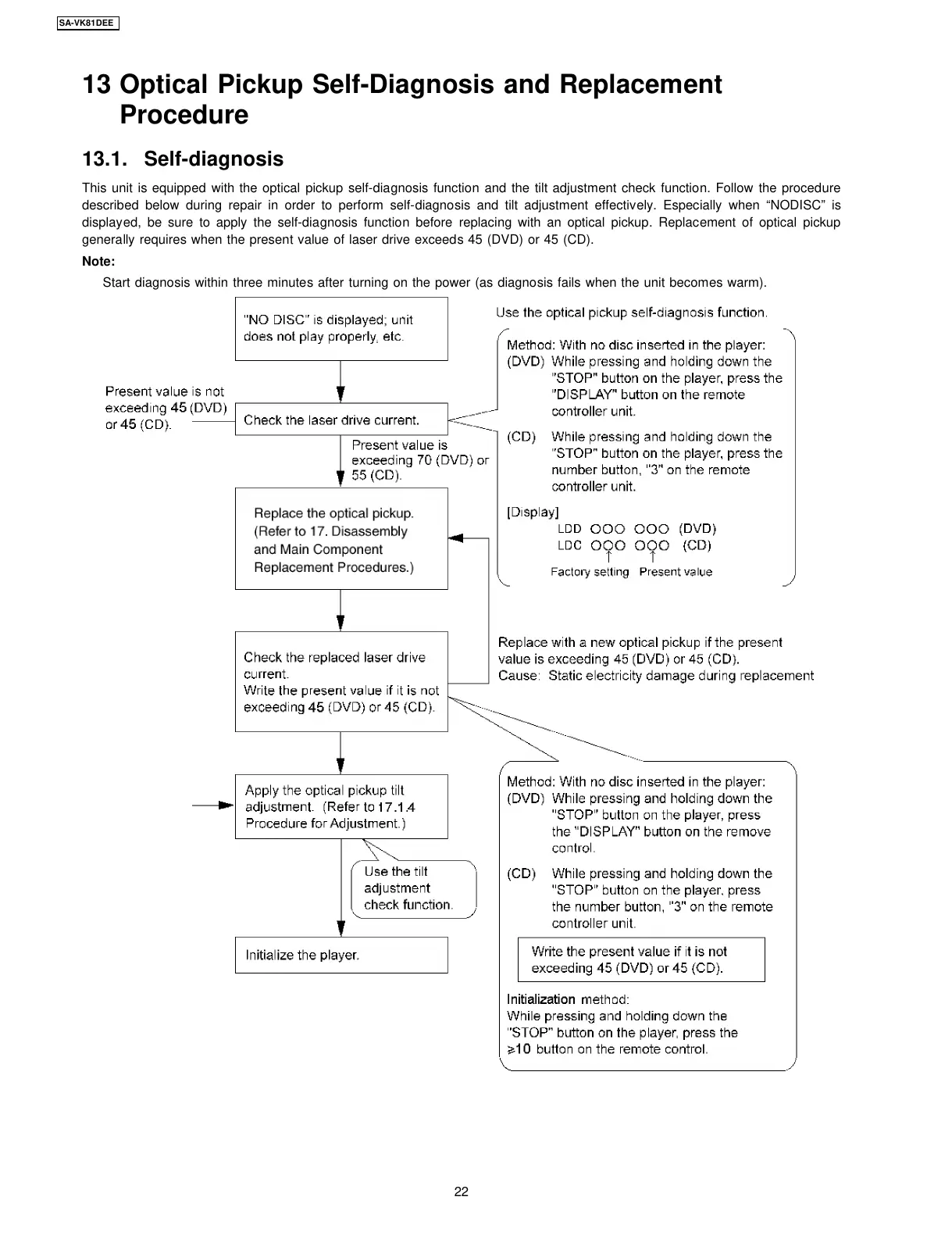 displayed, be sure to apply the self-diagnosis function before replacing with an optical pickup. Replacement of optical pickup