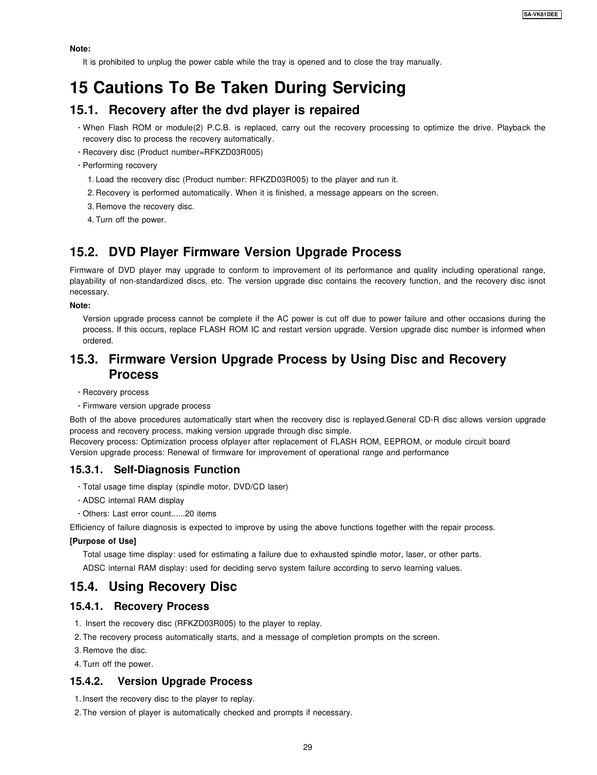 15.1. Recovery after the dvd player is repaired