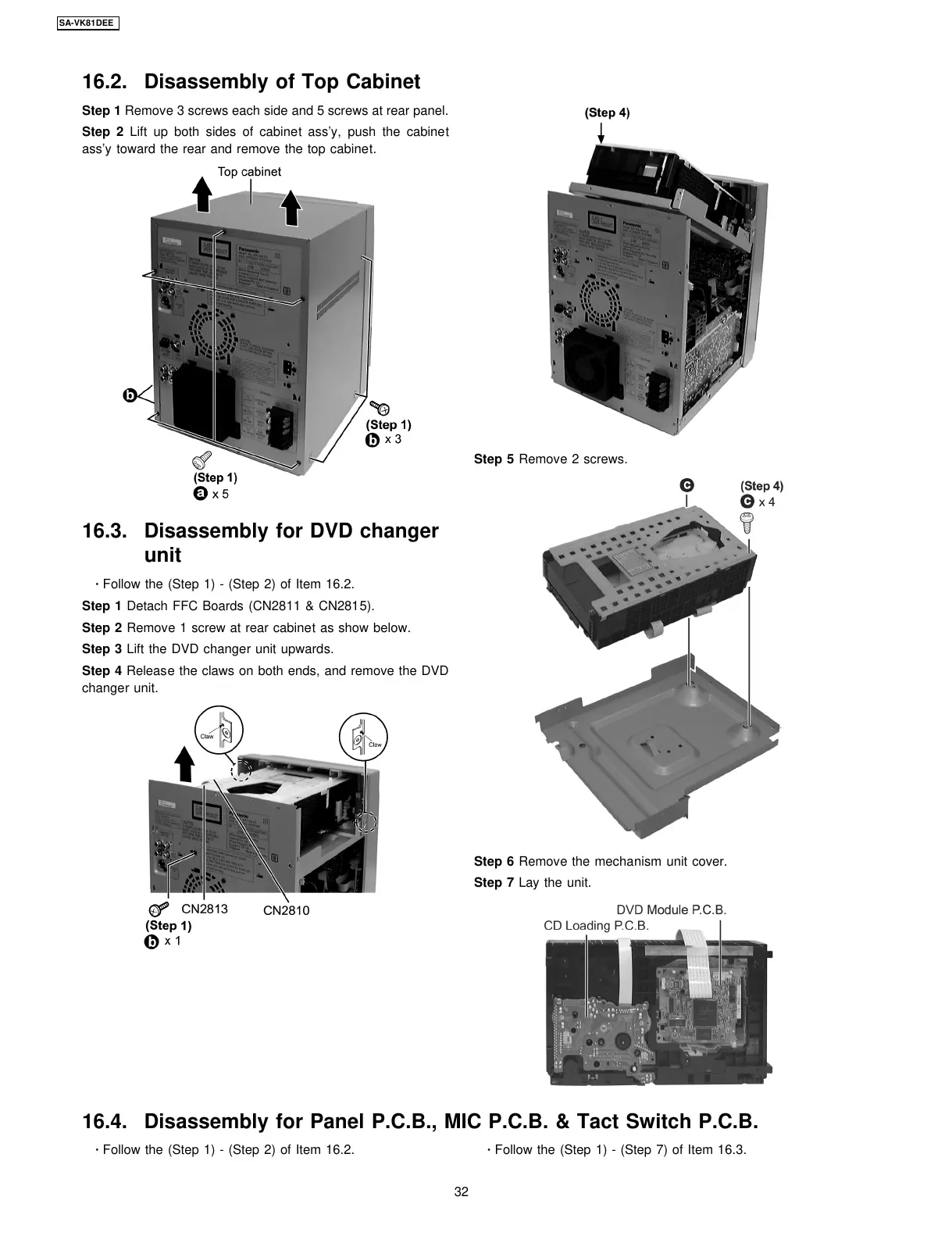 16.4. Disassembly for Panel P.C.B., MIC P.C.B. & Tact Switch P.C.B.