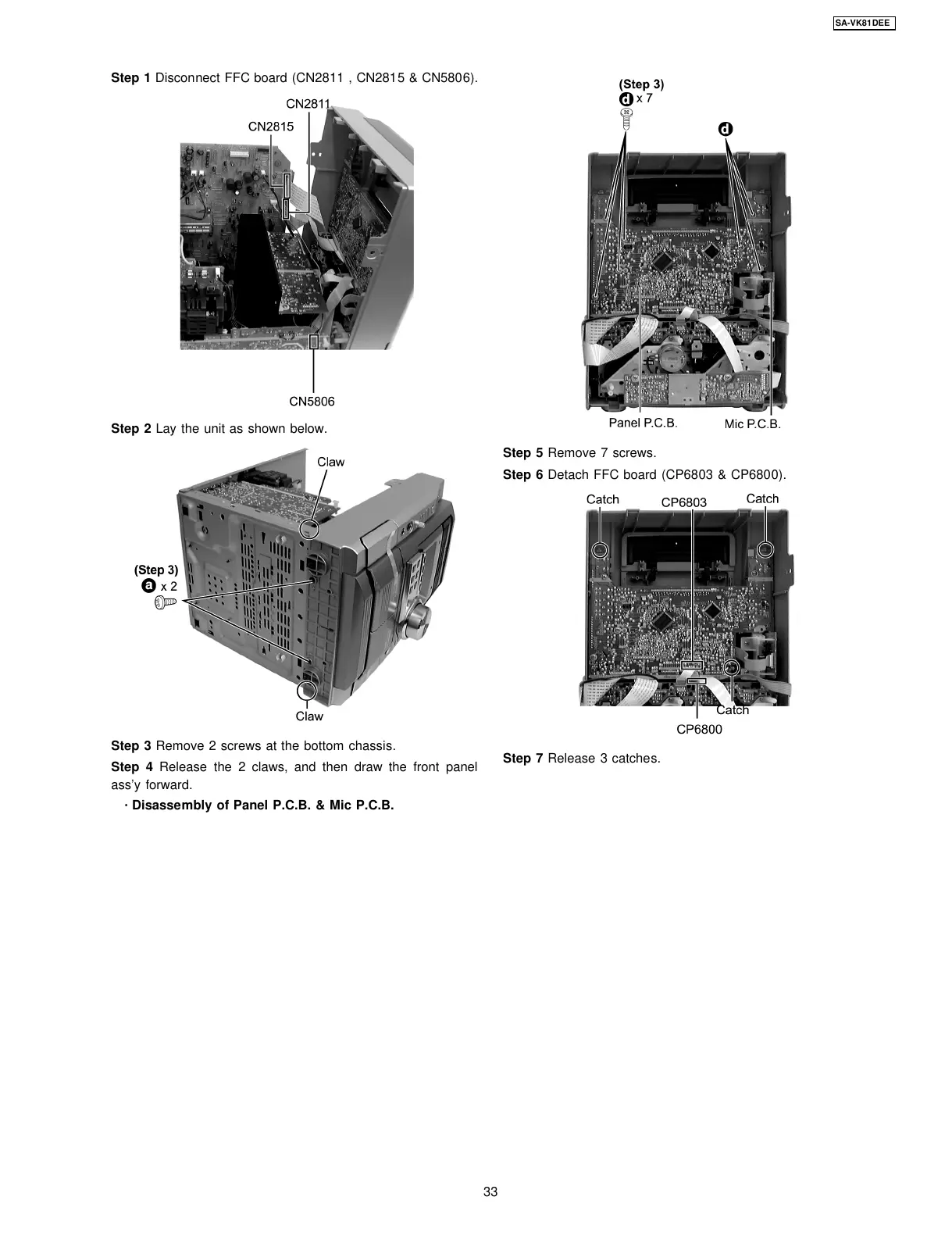 Disassembly of Panel P.C.B. & Mic P.C.B.