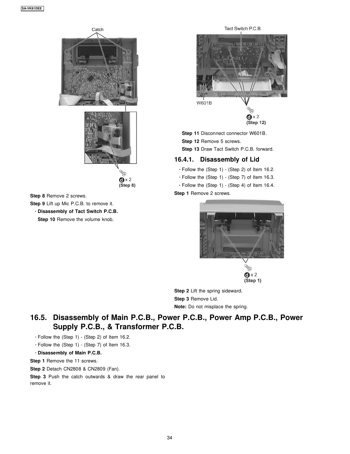 16.5. Disassembly of Main P.C.B., Power P.C.B., Power Amp P.C.B., Power