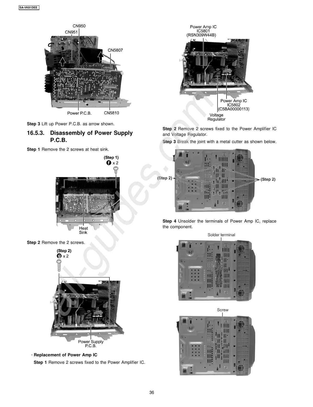 Step 1 Remove 2 screws fixed to the Power Amplifier IC.