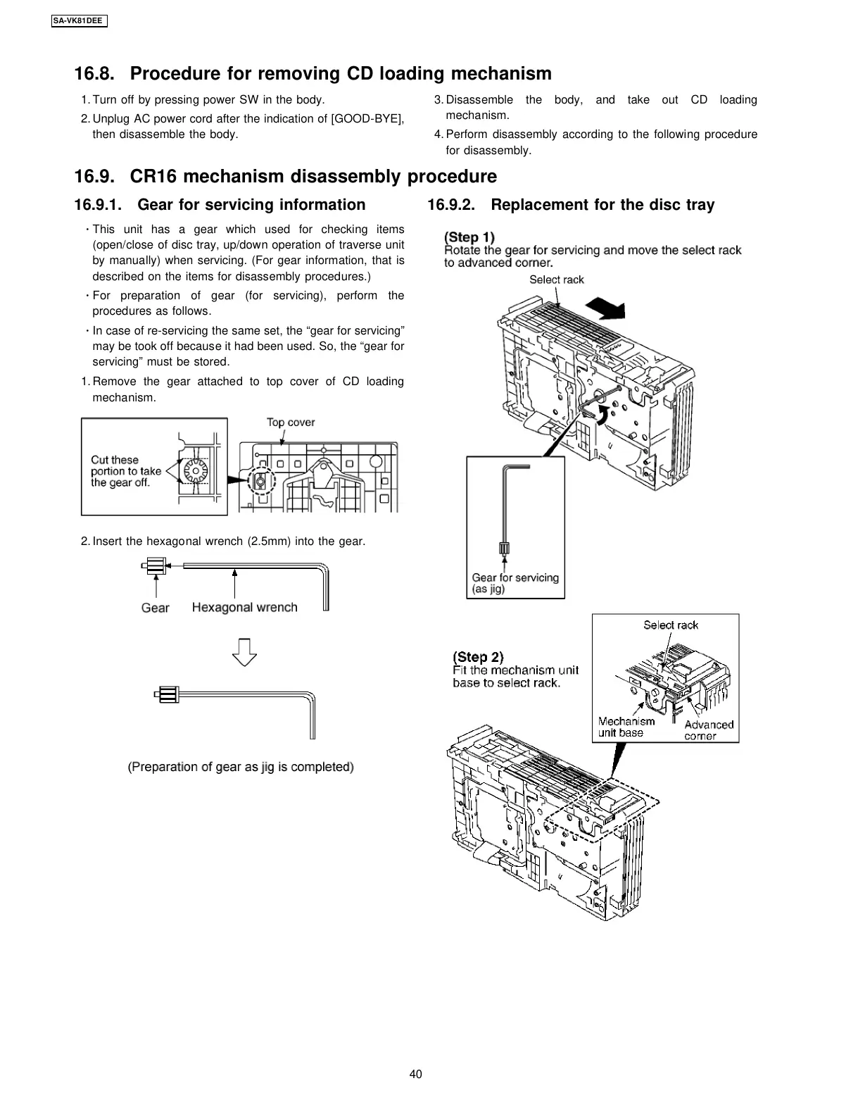 16.8. Procedure for removing CD loading mechanism