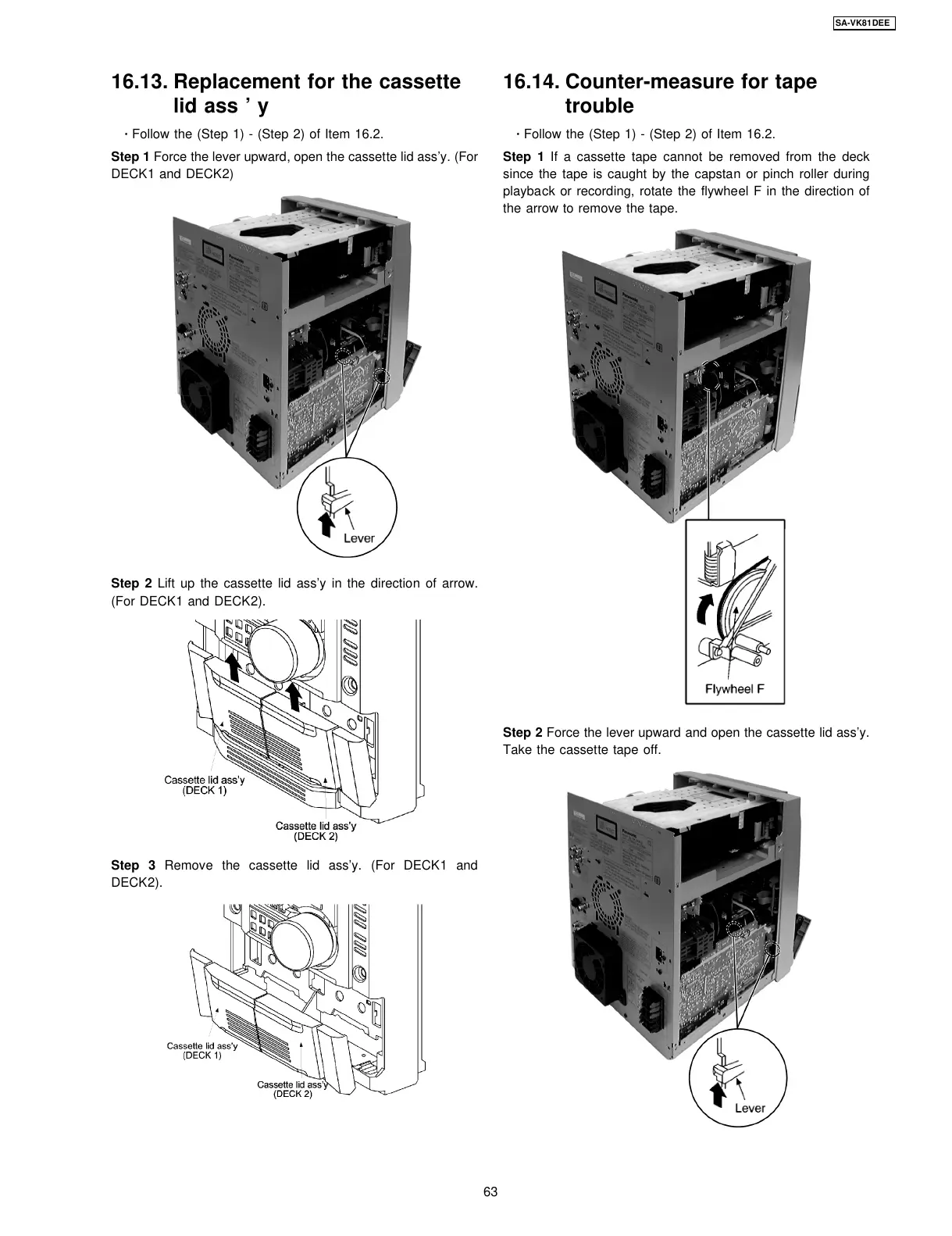 Step 3 Remove the cassette lid ass’y. (For DECK1 and