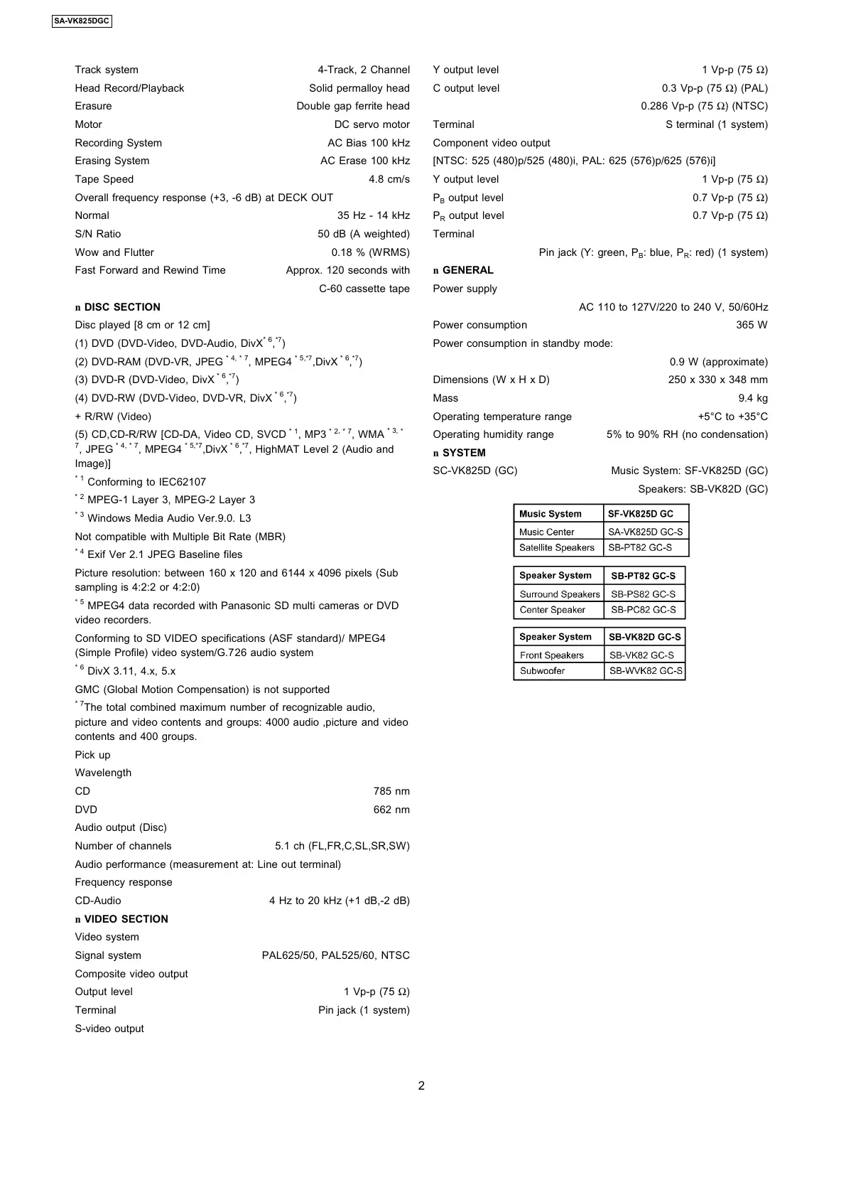 SC-VK825D (GC) Music System: SF-VK825D (GC)