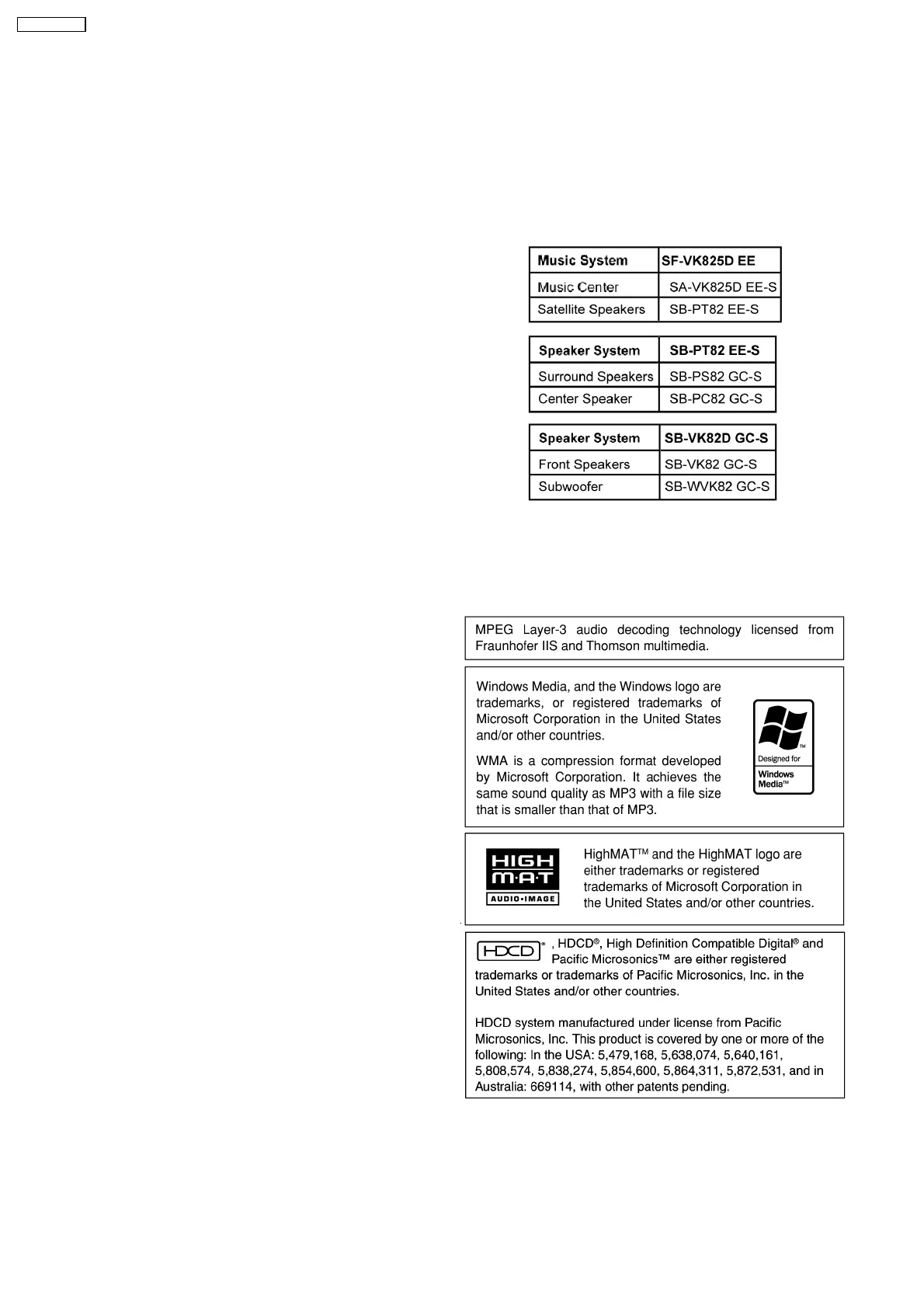 SC-VK825D (EE-S) Music System: SF-VK825D (EE-S)