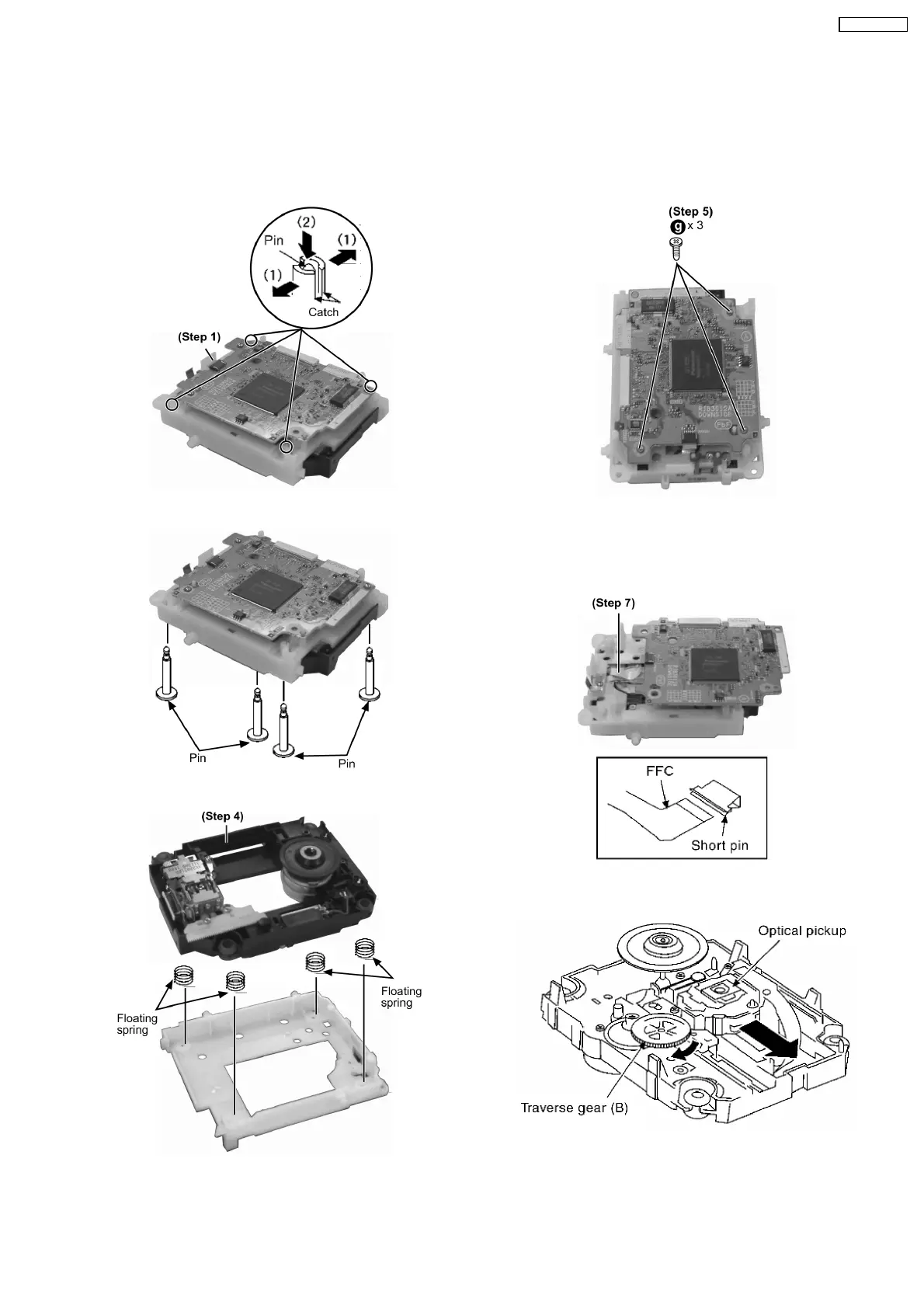 Note: Insert a short pin into FFC of the optical pickup. [See