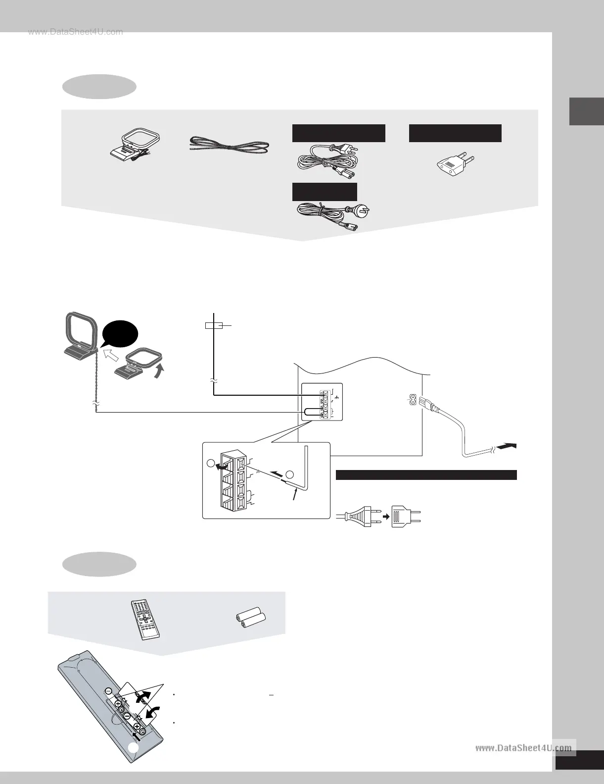 Panasonic SA-VK90D - Simple Setup - Antennas and Power; Antenna and AC Power Connections; Remote Control Usage and Battery Installation