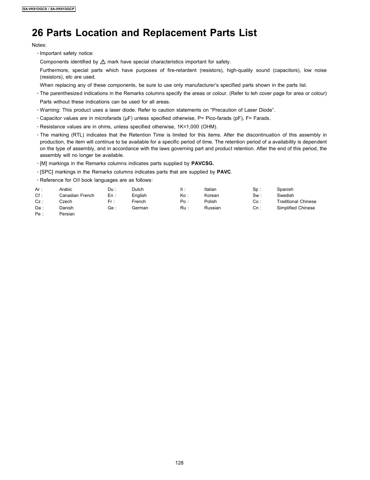 [SPC] markings in the Remarks columns indicates parts that are supplied by PAVC.