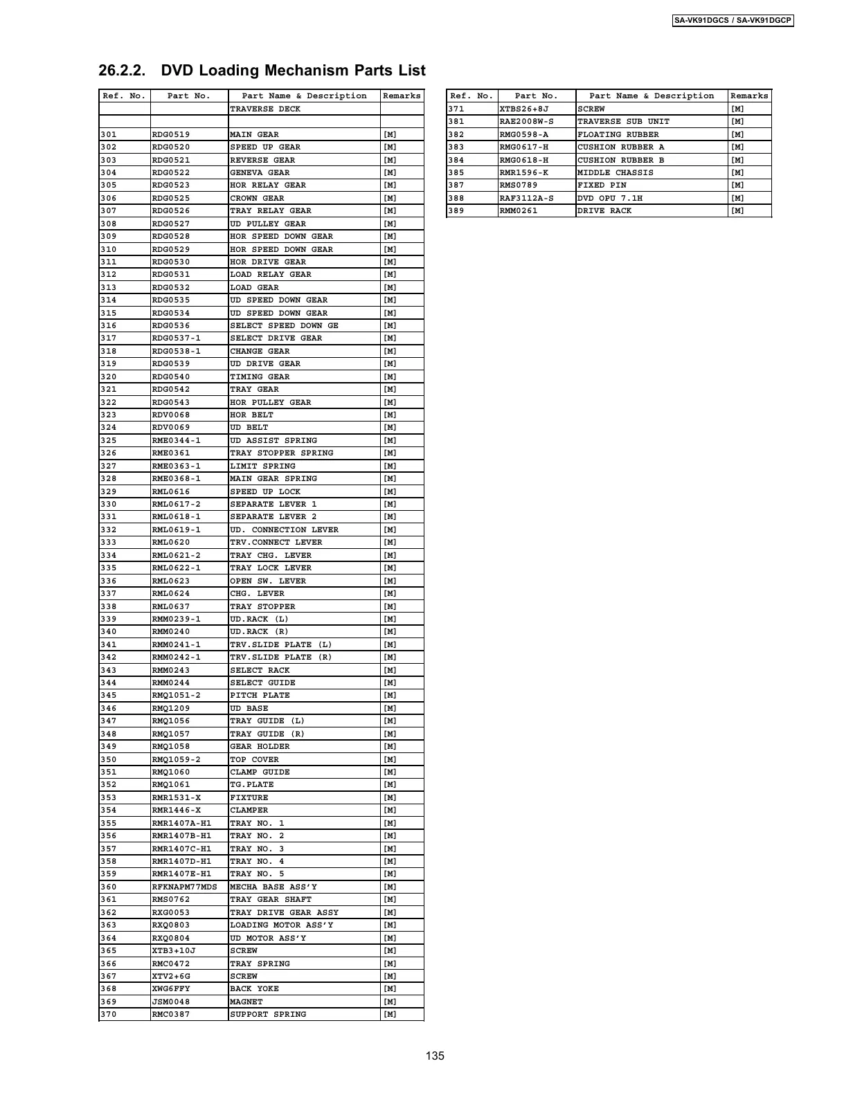 26.2.2. DVD Loading Mechanism Parts List