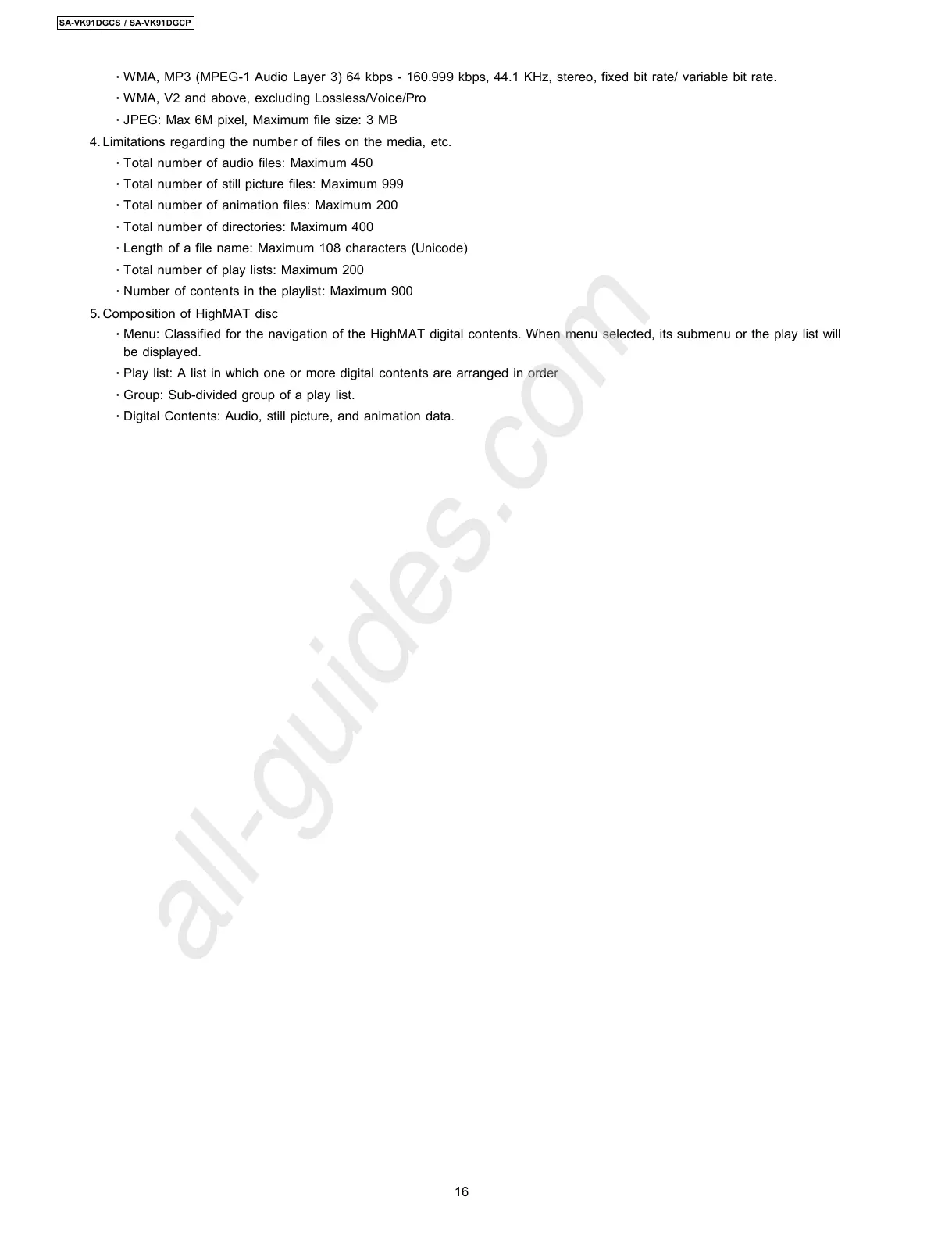 4. Limitations regarding the number of files on the media, etc.