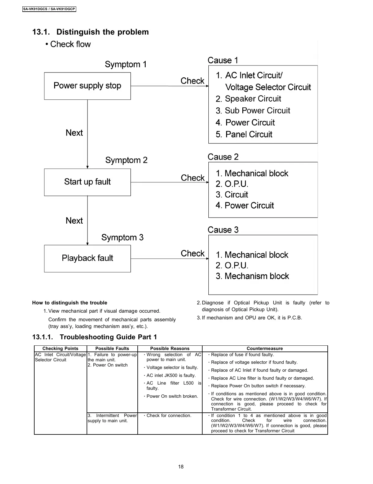 2. Diagnose if Optical Pickup Unit is faulty (refer to